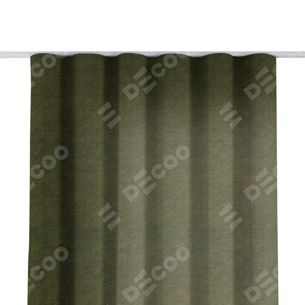 Комплект прямых штор, от производителя «Cortin», пошиты из ткани софт однотонный зелёный, артикул ткани 33110. С изнаночной стороны в верхней части штор пристрачивается шторная лента с декоративными складками «Волна». Для создания элегантных складок прямые шторы шьются по стандарту с коэффициентом 1:2 (на 100 см. ширины проёма 200 см. ширины ткани).