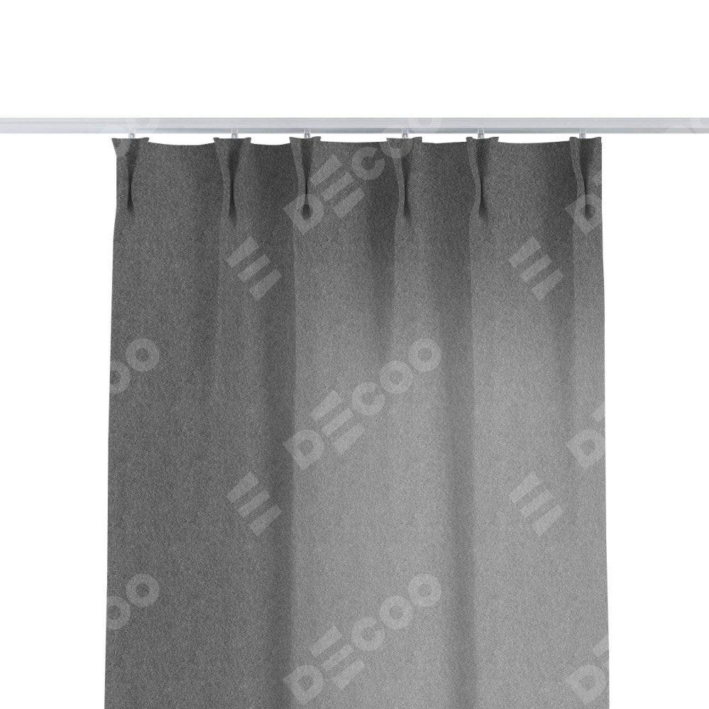 Комплект прямых штор, от производителя «Cortin», пошиты из ткани софт однотонный серый, артикул ткани 70605. С изнаночной стороны в верхней части штор пристрачивается шторная лента с декоративными складками «Кустик». Для создания элегантных складок прямые шторы шьются по стандарту с коэффициентом 1:2 (на 100 см. ширины проёма 200 см. ширины ткани).