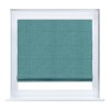 Римская штора кассетного типа, производителя «Cortin», устанавливается только на пластиковые окна и прилегает к стеклопакету, пошита из ткани лён бирюза, артикул 7446.