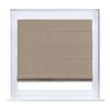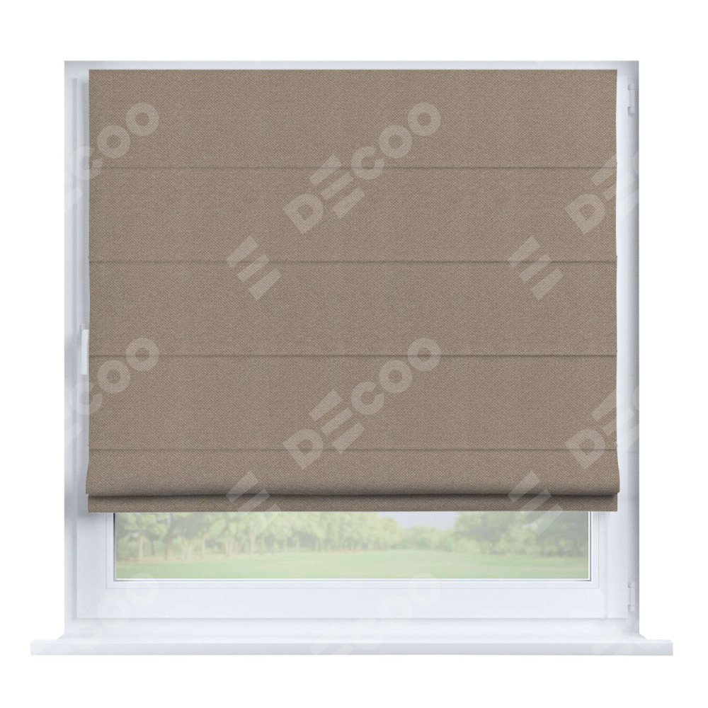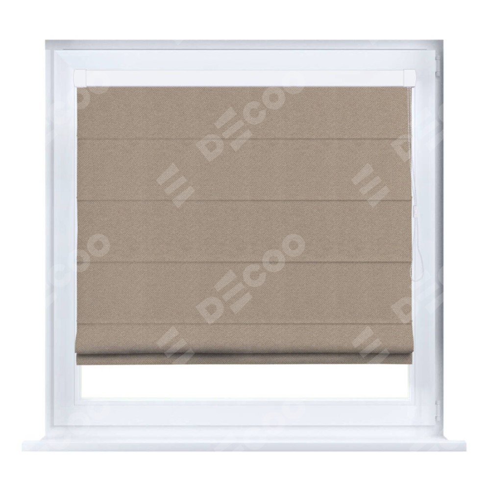 Римская штора производителя «Cortin», устанавливается на створку окна, пошита из ткани лён димаут светло-бежевый, артикул 00002. Штора шьётся по индивидуальным размерам, для данного типа римской шторы возможная ширина от 35 до 150 см., высота до 250 см.