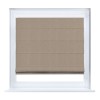 Римская штора кассетного типа, производителя «Cortin», устанавливается только на пластиковые окна и прилегает к стеклопакету, пошита из ткани лён димаут светло-бежевый, артикул 00002.