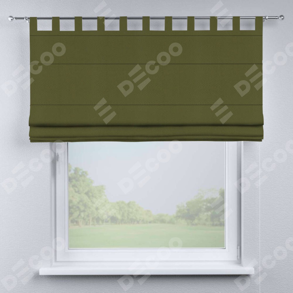 Римская штора производителя «Cortin», используется для проёма, пошита из ткани блэкаут однотонный зелёный, артикул ткани 81859. Данная модель пошита на петлях, комплектуется на выбор круглым карнизом и подходит для монтажа на стену. Римская штора на петлях имеет простую систему регулировки высоты, отличительным преимуществом данной модели является простой способ монтажа. Достаточно повесить ее на трубу и штора готова!