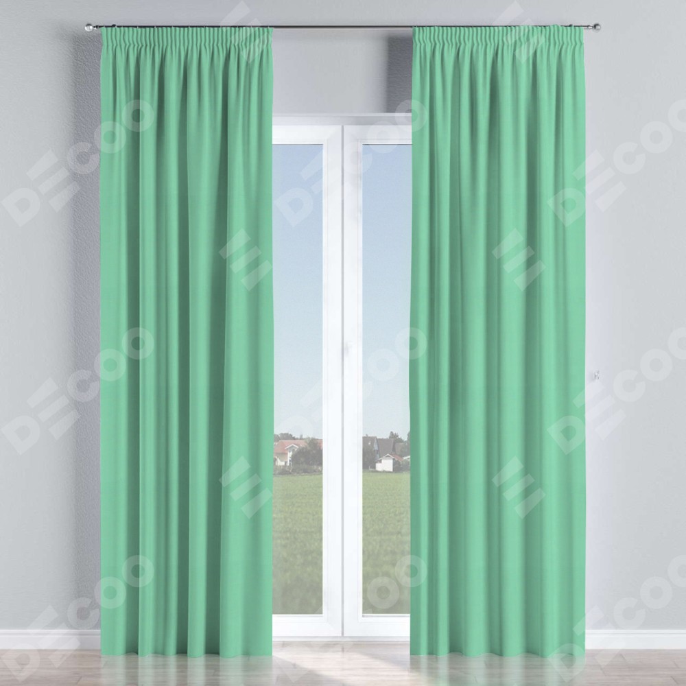Комплект прямых штор, от производителя «Cortin», пошиты из ткани pipa блэкаут бирюза, артикул ткани 81852. С изнаночной стороны в верхней части штор пристрачивается шторная лента с декоративными складками «Карандаш». Для создания элегантных складок прямые шторы шьются по стандарту с коэффициентом 1:2 (на 100 см. ширины проёма 200 см. ширины ткани).