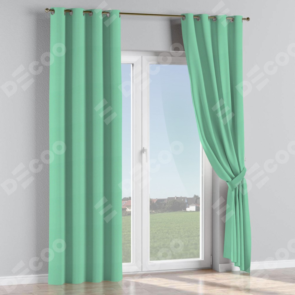 Комплект прямых штор, от производителя «Cortin», пошиты из ткани pipa блэкаут бирюза, артикул ткани 81852. Данная модель пошита на люверсах, комплектуется на выбор круглым карнизом и подходит для монтажа на стену или потолок. Прямые шторы на люверсах шьются по стандарту с коэффициентом 1/2 (на 100 см. ширины проёма 200 см. ширины ткани), отличительным преимуществом данной модели является простой способ монтажа. Достаточно повесить ее на трубу и штора готова!