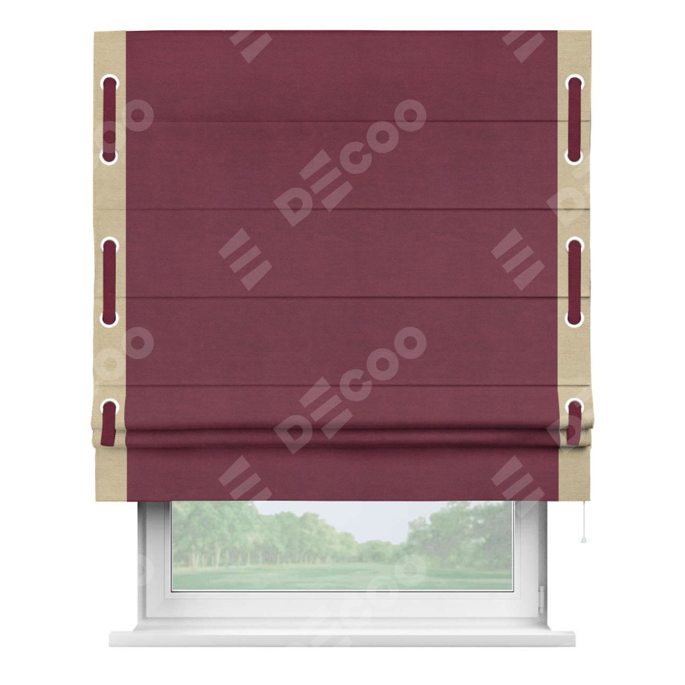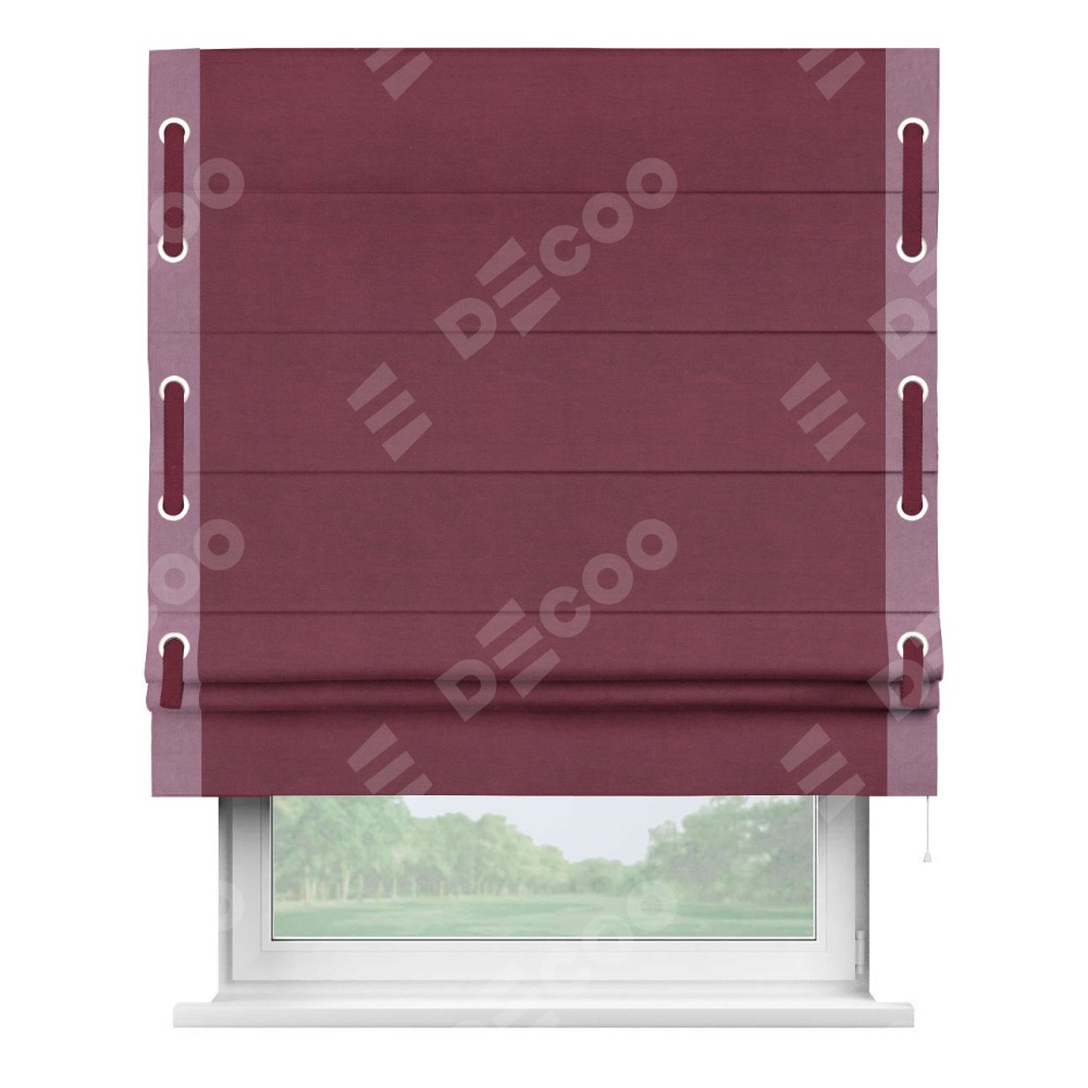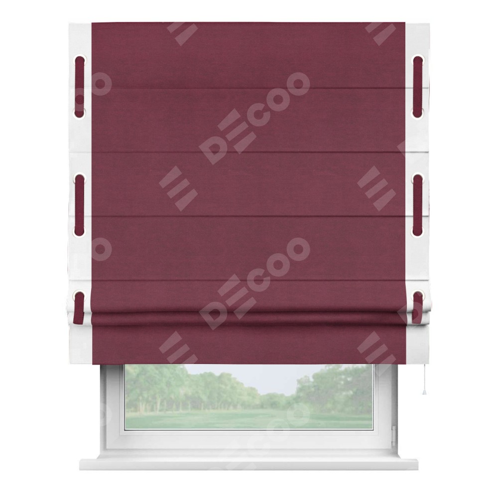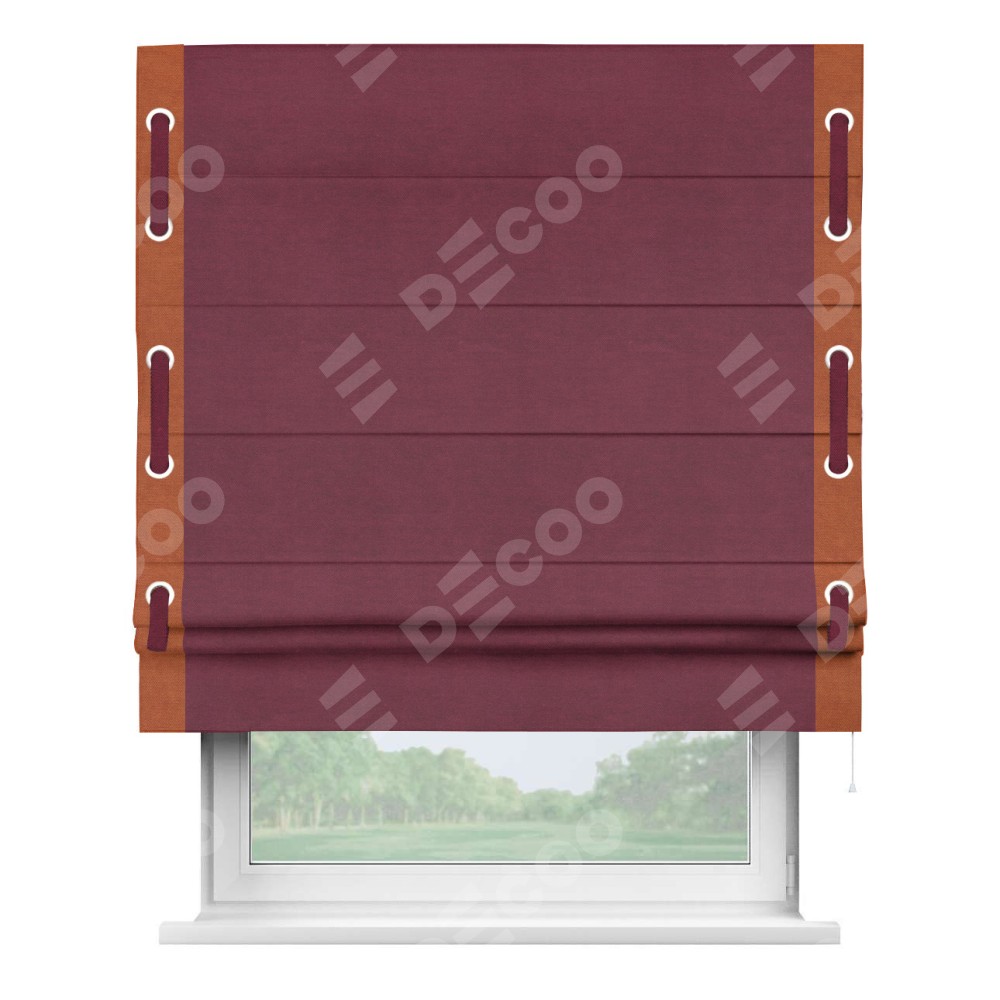 Римская штора «Кортин» с кантом Стрим Дуо (люверсы с пояском), для проема, ткань вельвет бордовый