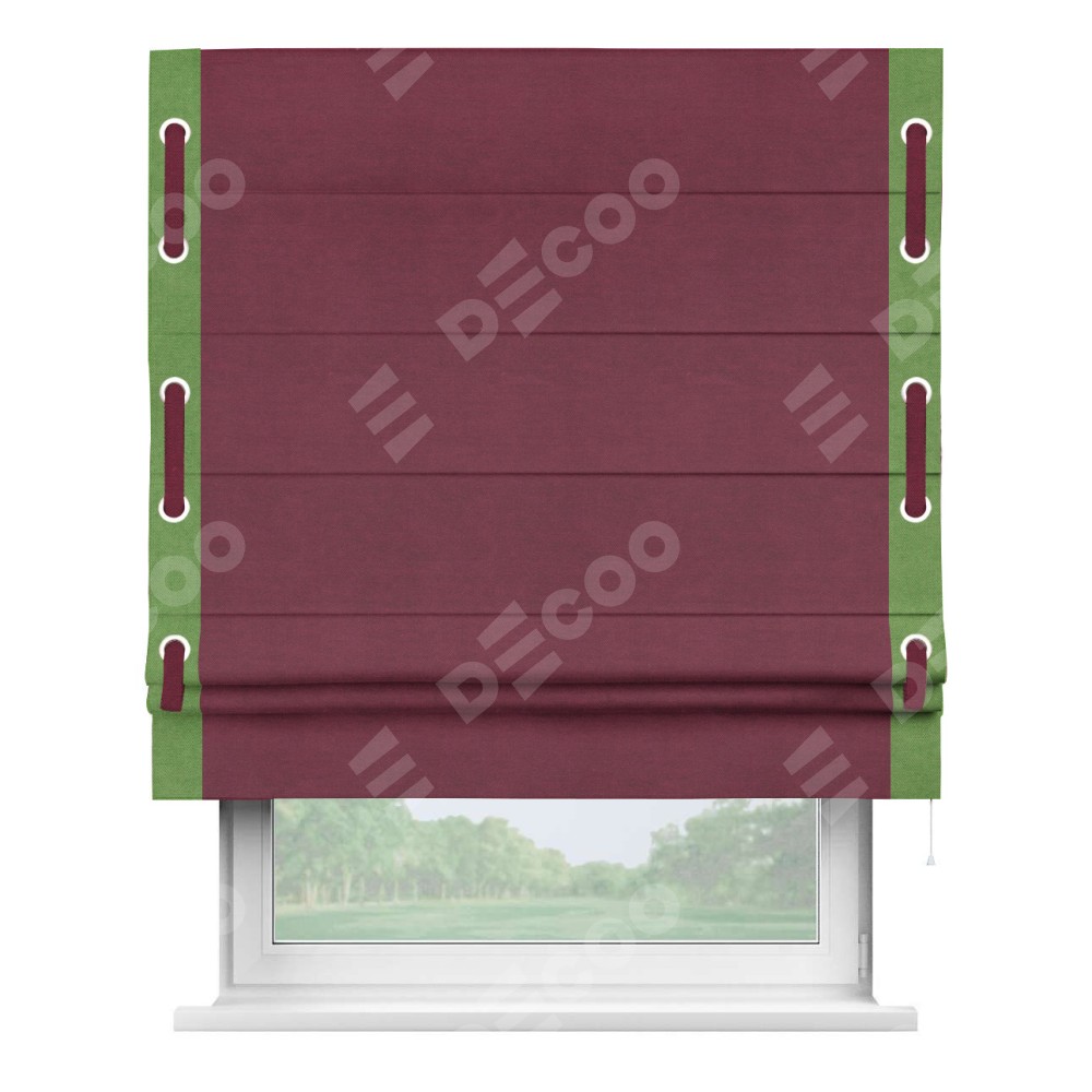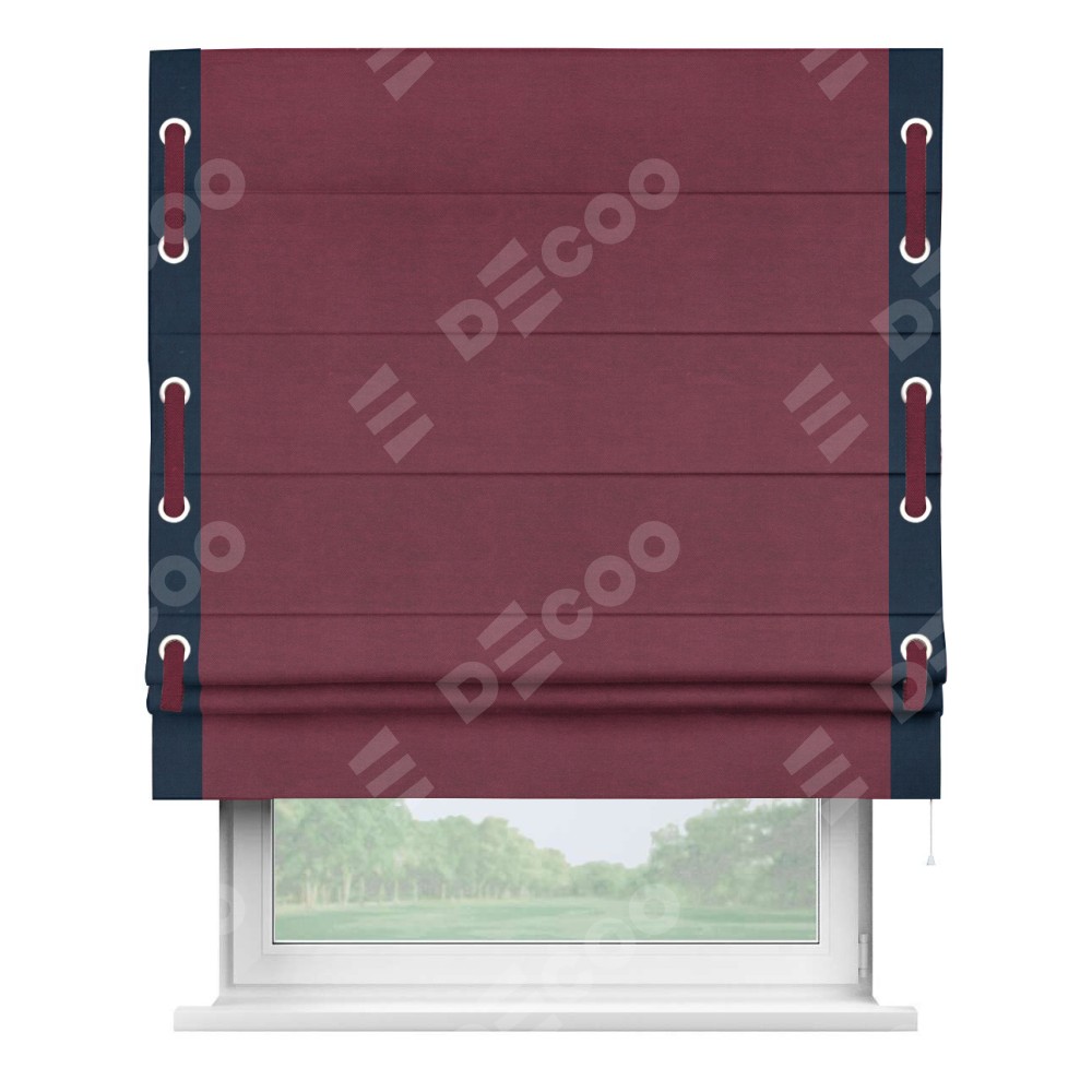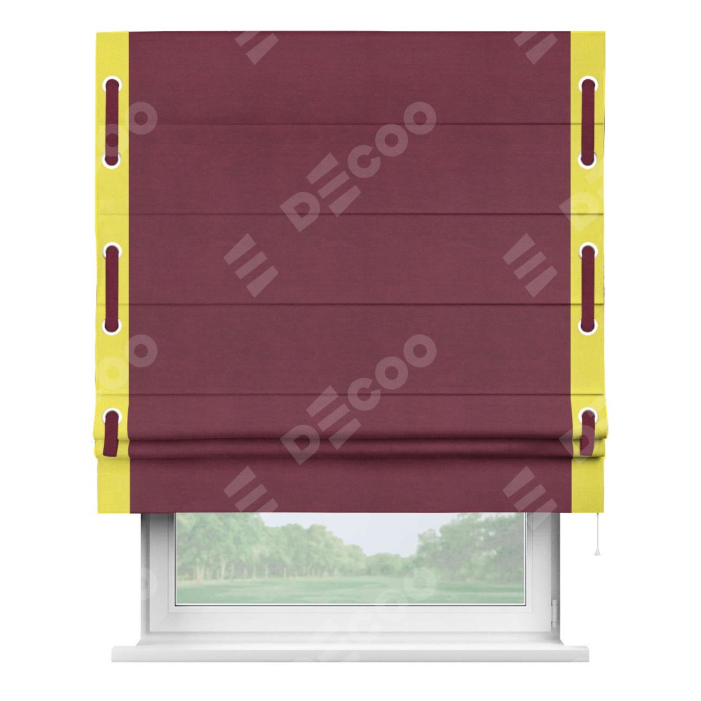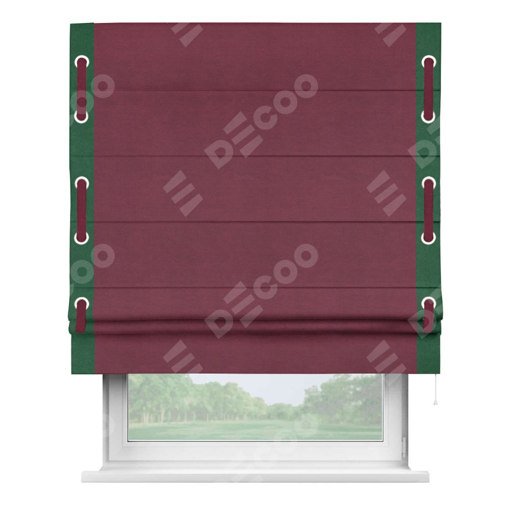 Римская штора «Кортин» с кантом Стрим Дуо (люверсы с пояском), для проема, ткань вельвет бордовый
