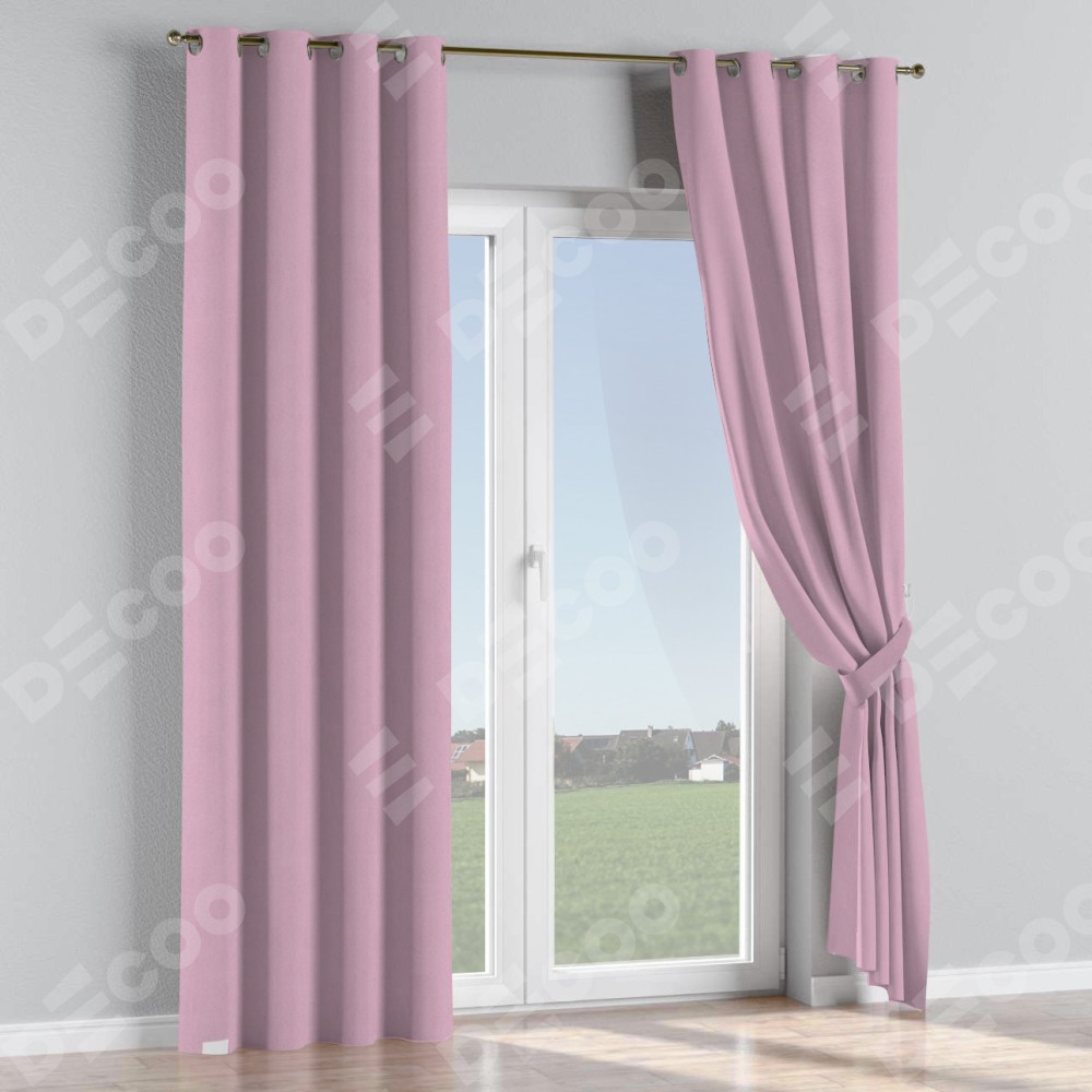Комплект прямых штор, от производителя «Cortin», пошиты из ткани pipa блэкаут розовый, артикул ткани 12091. Данная модель пошита на люверсах, комплектуется на выбор круглым карнизом и подходит для монтажа на стену или потолок. Прямые шторы на люверсах шьются по стандарту с коэффициентом 1/2 (на 100 см. ширины проёма 200 см. ширины ткани), отличительным преимуществом данной модели является простой способ монтажа. Достаточно повесить ее на трубу и штора готова!