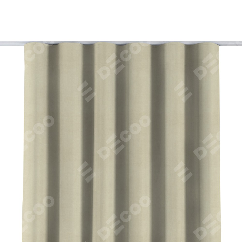 Комплект прямых штор, от производителя «Cortin», пошиты из ткани бархат молочный, артикул ткани 21409. С изнаночной стороны в верхней части штор пристрачивается шторная лента с декоративными складками «Волна». Для создания элегантных складок прямые шторы шьются по стандарту с коэффициентом 1:2 (на 100 см. ширины проёма 200 см. ширины ткани).