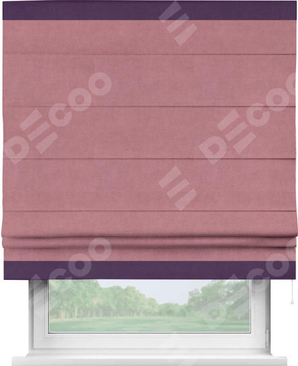 Римская штора «Кортин» с кантом Горизонт, для проема, ткань вельвет брусника