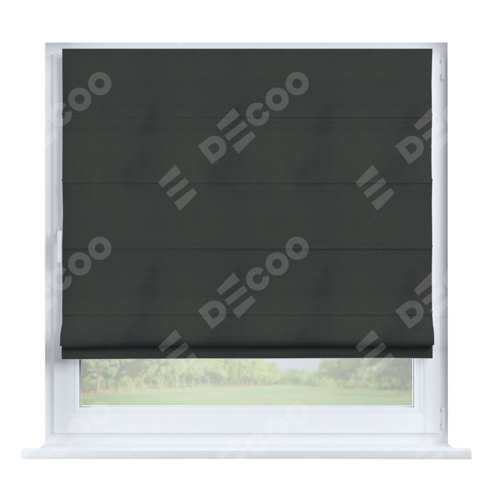 Римская штора производителя «Cortin», устанавливается на створку окна, пошита из ткани бархат серый, артикул 5024. Штора шьётся по индивидуальным размерам, для данного типа римской шторы возможная ширина от 35 до 150 см., высота до 250 см.
