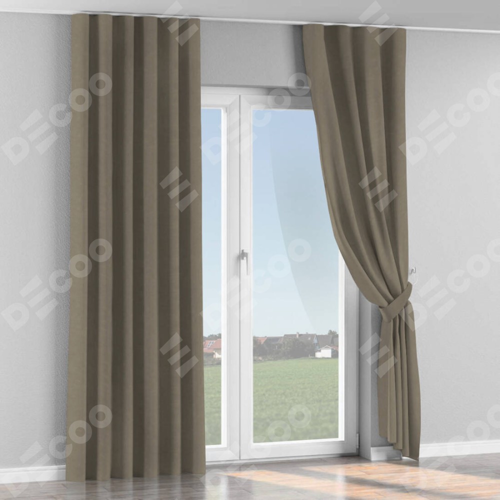 Комплект прямых штор, от производителя «Cortin», пошиты из ткани бархат ария, артикул ткани 31. С изнаночной стороны в верхней части штор пристрачивается шторная лента с декоративными складками «Волна». Для создания элегантных складок прямые шторы шьются по стандарту с коэффициентом 1:2 (на 100 см. ширины проёма 200 см. ширины ткани).