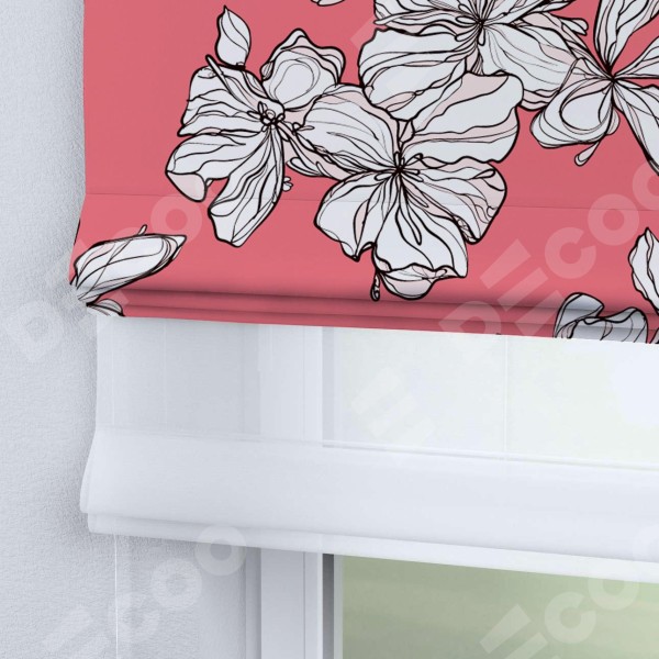 Римская штора день-ночь производителя «Cortin», используется для проёма, пошита из двух полотен, с лицевой блэкаут с нанесением сублимационной печати «Белые цветы», вторая ткань тюль (по стандарту комплектуется тюль белого цвета артикул V-01). Имеет универсальный механизм и подходит для монтажа: на потолок, на стену и в нишу.