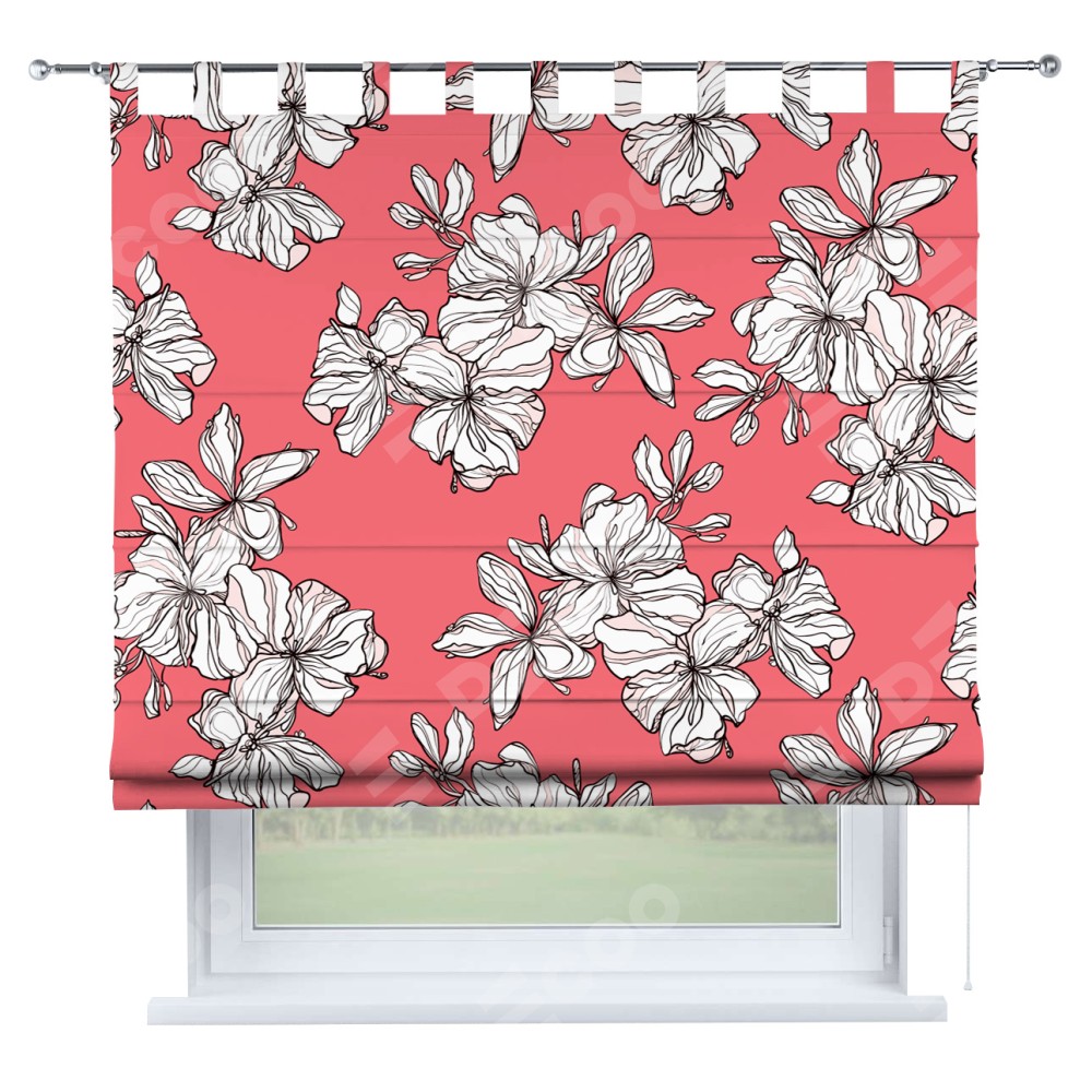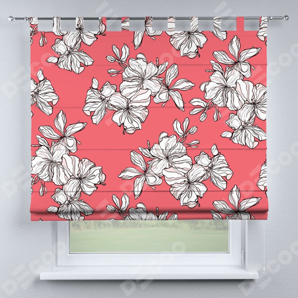 Римская штора производителя «Cortin», используется для проёма, пошита из ткани блэкаут с нанесением сублимационной печати «Белые цветы». Данная модель пошита на петлях, комплектуется на выбор круглым карнизом и подходит для монтажа на стену. Римская штора на петлях имеет простую систему регулировки высоты, отличительным преимуществом данной модели является простой способ монтажа. Достаточно повесить ее на трубу и штора готова!