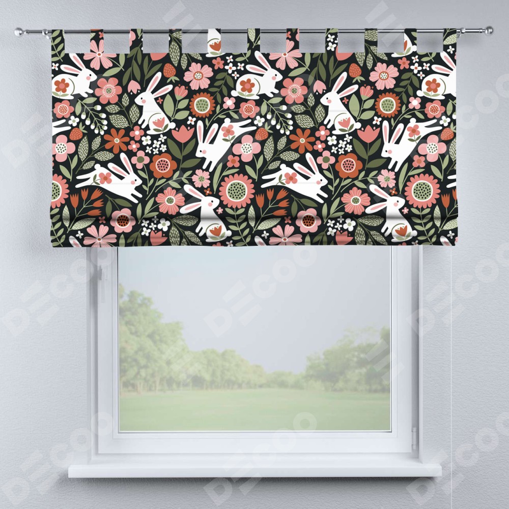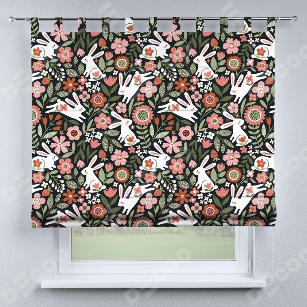 Римская штора производителя «Cortin», используется для проёма, пошита из ткани блэкаут с нанесением сублимационной печати «Зайчики в цветнике». Данная модель пошита на петлях, комплектуется на выбор круглым карнизом и подходит для монтажа на стену. Римская штора на петлях имеет простую систему регулировки высоты, отличительным преимуществом данной модели является простой способ монтажа. Достаточно повесить ее на трубу и штора готова!