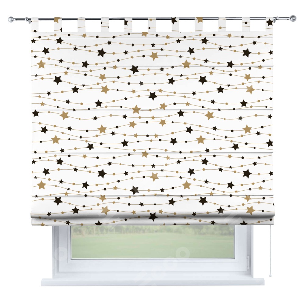 Римская штора производителя «Cortin», используется для проёма, пошита из ткани блэкаут с нанесением сублимационной печати «Звёздная нить». Данная модель пошита на петлях, комплектуется на выбор круглым карнизом и подходит для монтажа на стену. Римская штора на петлях имеет простую систему регулировки высоты, отличительным преимуществом данной модели является простой способ монтажа. Достаточно повесить ее на трубу и штора готова!
