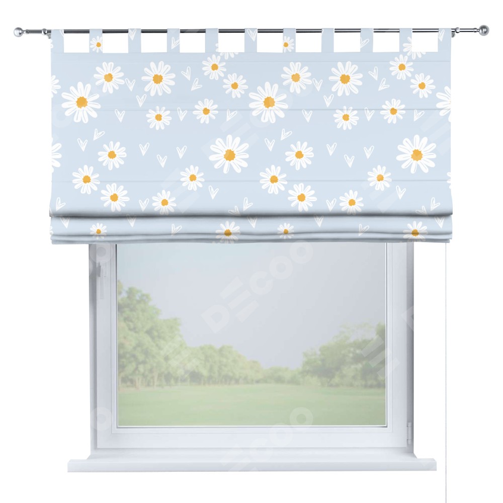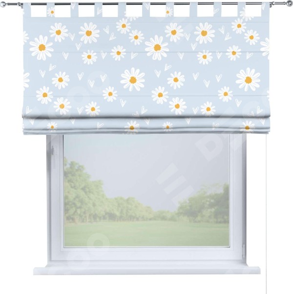 Римская штора производителя «Cortin», используется для проёма, пошита из ткани блэкаут с нанесением сублимационной печати «Летние ромашки». Данная модель пошита на петлях, комплектуется на выбор круглым карнизом и подходит для монтажа на стену. Римская штора на петлях имеет простую систему регулировки высоты, отличительным преимуществом данной модели является простой способ монтажа. Достаточно повесить ее на трубу и штора готова!