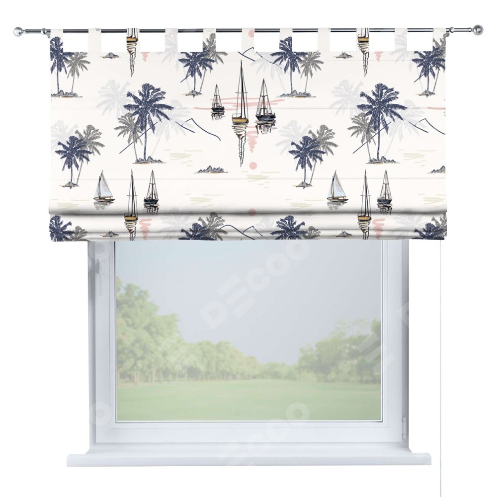 Римская штора производителя «Cortin», используется для проёма, пошита из ткани блэкаут с нанесением сублимационной печати «Морское путешествие». Данная модель пошита на петлях, комплектуется на выбор круглым карнизом и подходит для монтажа на стену. Римская штора на петлях имеет простую систему регулировки высоты, отличительным преимуществом данной модели является простой способ монтажа. Достаточно повесить ее на трубу и штора готова!