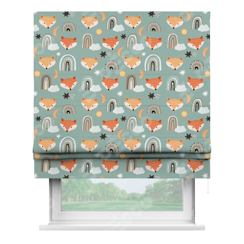 Римская штора производителя «Cortin», используется для проёма, пошита из ткани блэкаут с нанесением сублимационной печати «Озорные лисички». Имеет универсальный механизм и подходит для монтажа: на потолок, на стену и в нишу.