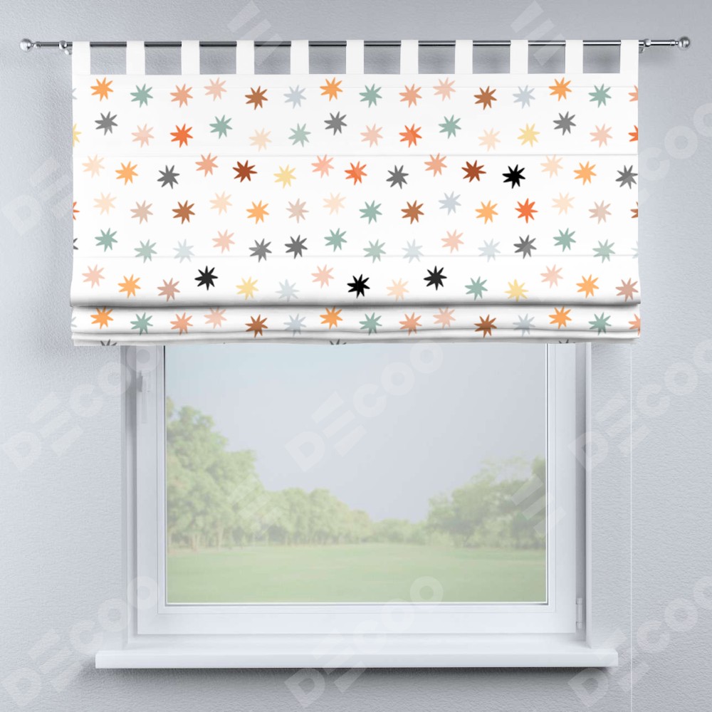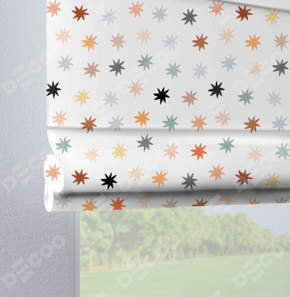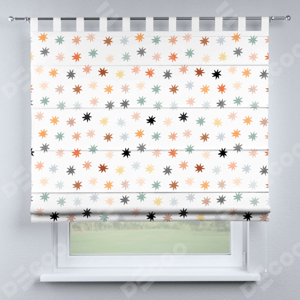 Римская штора производителя «Cortin», используется для проёма, пошита из ткани блэкаут с нанесением сублимационной печати «Разноцветные звёзды». Данная модель пошита на петлях, комплектуется на выбор круглым карнизом и подходит для монтажа на стену. Римская штора на петлях имеет простую систему регулировки высоты, отличительным преимуществом данной модели является простой способ монтажа. Достаточно повесить ее на трубу и штора готова!