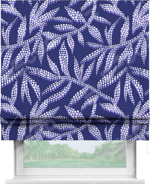 Римская штора производителя «Cortin», используется для проёма, пошита из ткани блэкаут с нанесением сублимационной печати «Ночные цветы». Имеет универсальный механизм и подходит для монтажа: на потолок, на стену и в нишу.