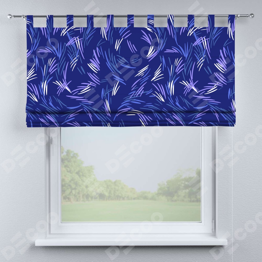 Римская штора производителя «Cortin», используется для проёма, пошита из ткани блэкаут с нанесением сублимационной печати «Синяя абстракция». Данная модель пошита на петлях, комплектуется на выбор круглым карнизом и подходит для монтажа на стену. Римская штора на петлях имеет простую систему регулировки высоты, отличительным преимуществом данной модели является простой способ монтажа. Достаточно повесить ее на трубу и штора готова!