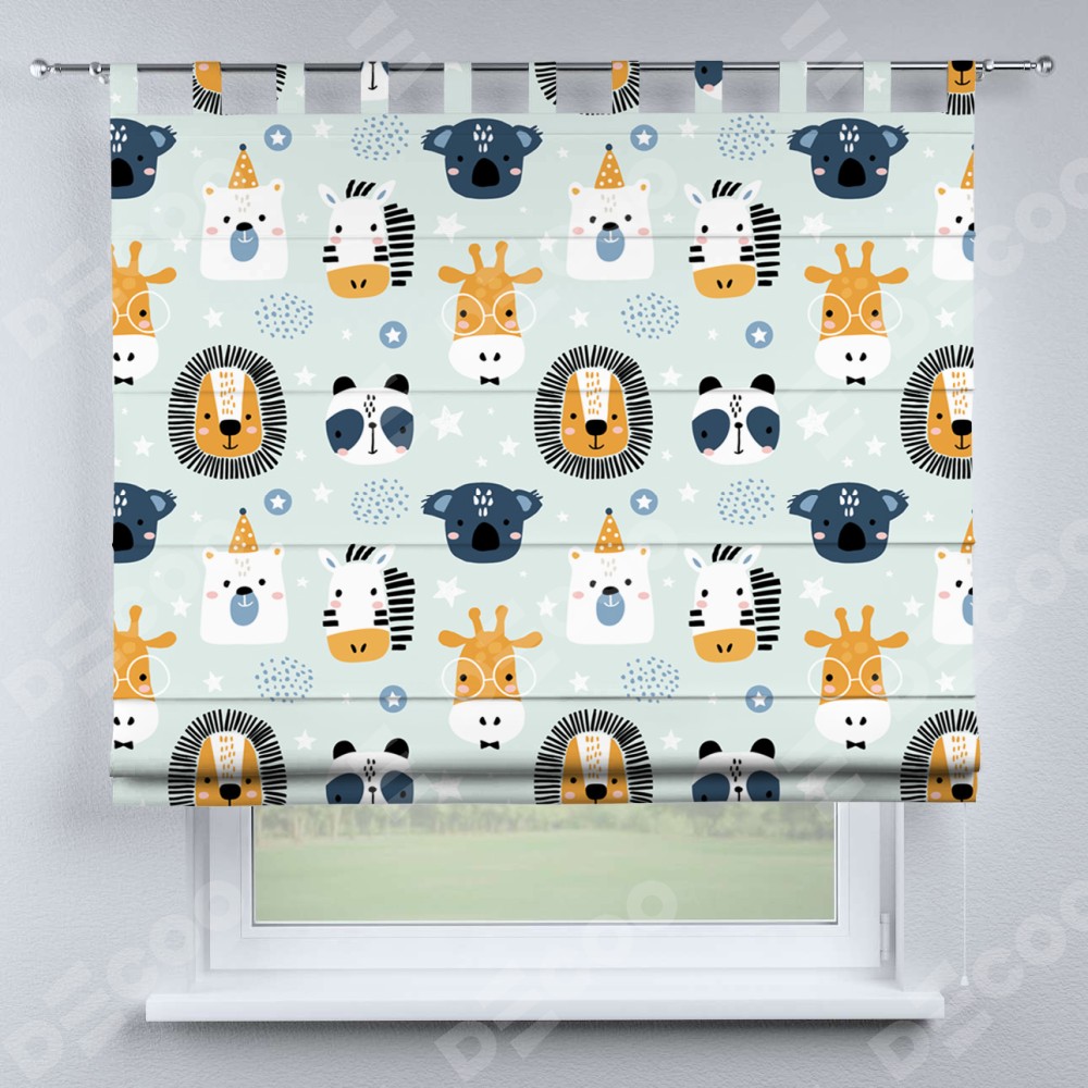Римская штора производителя «Cortin», используется для проёма, пошита из ткани блэкаут с нанесением сублимационной печати «Чудесный зоопарк». Данная модель пошита на петлях, комплектуется на выбор круглым карнизом и подходит для монтажа на стену. Римская штора на петлях имеет простую систему регулировки высоты, отличительным преимуществом данной модели является простой способ монтажа. Достаточно повесить ее на трубу и штора готова!