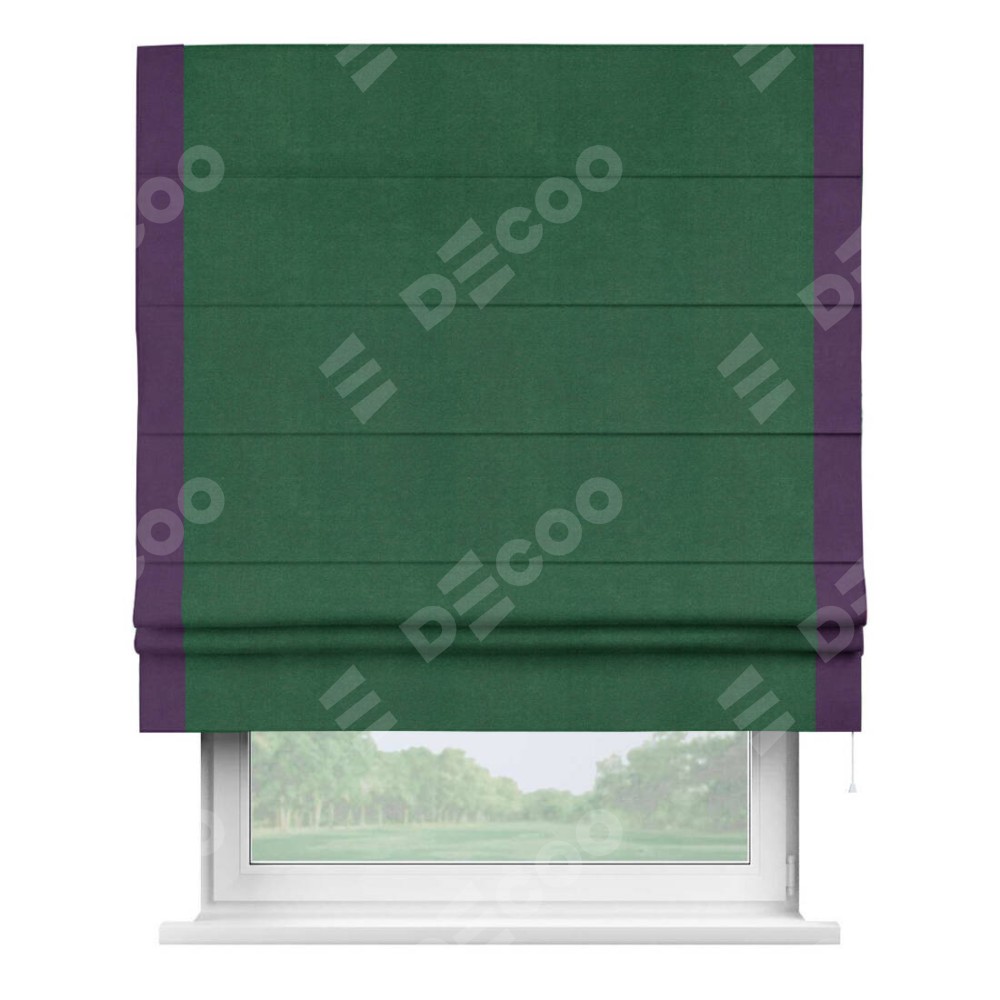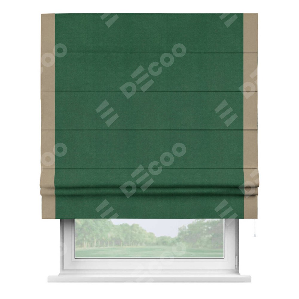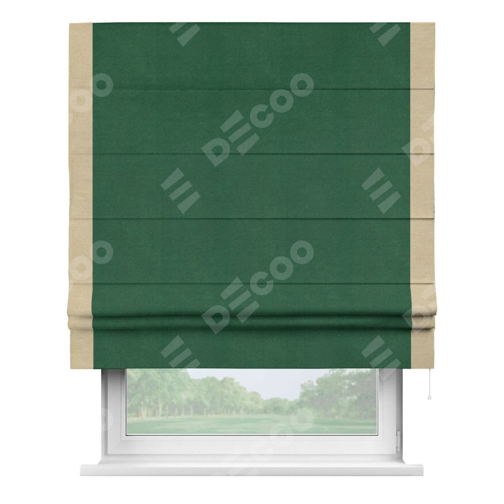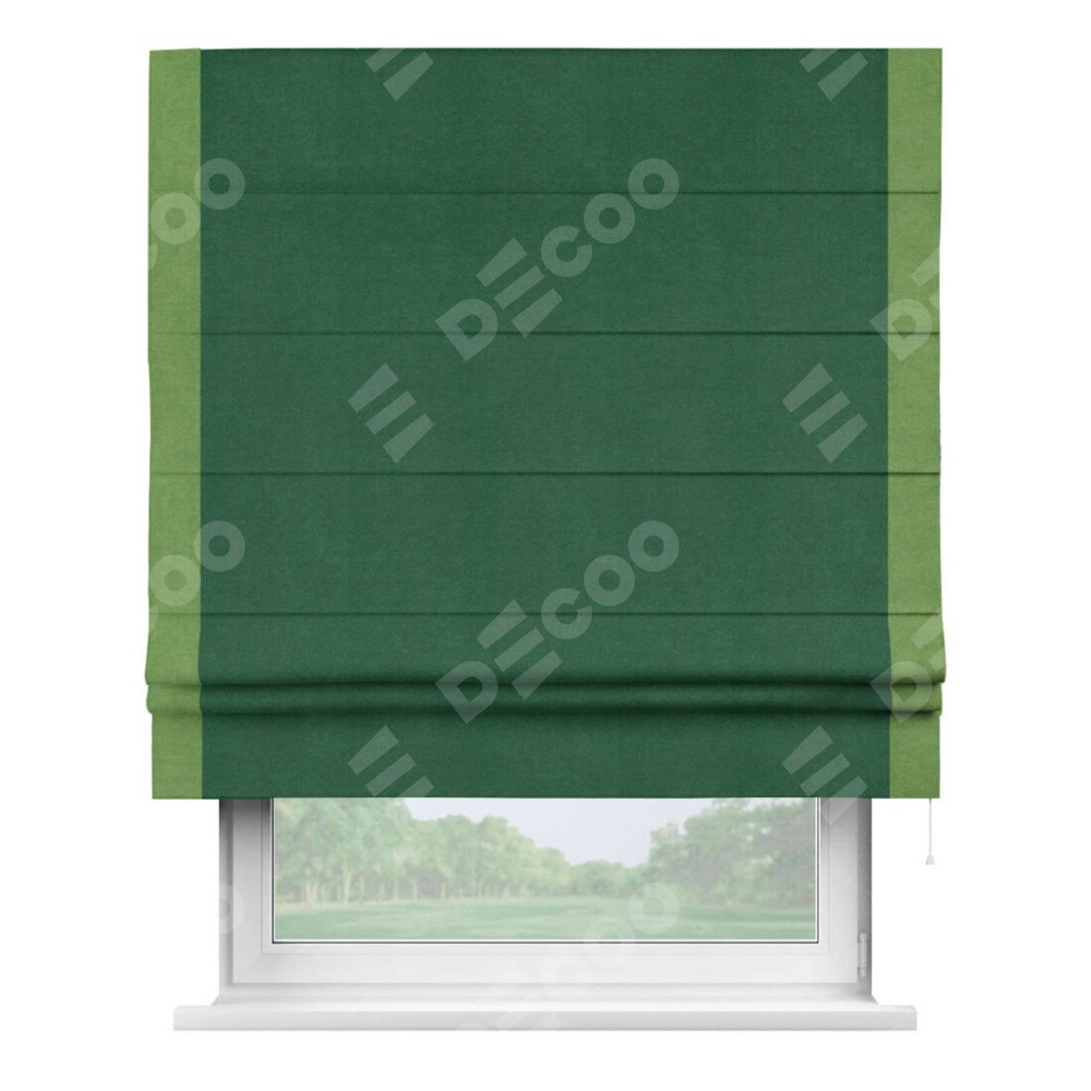 Римская штора «Кортин» с кантом Стрим Дуо, для проема, ткань вельвет зеленый