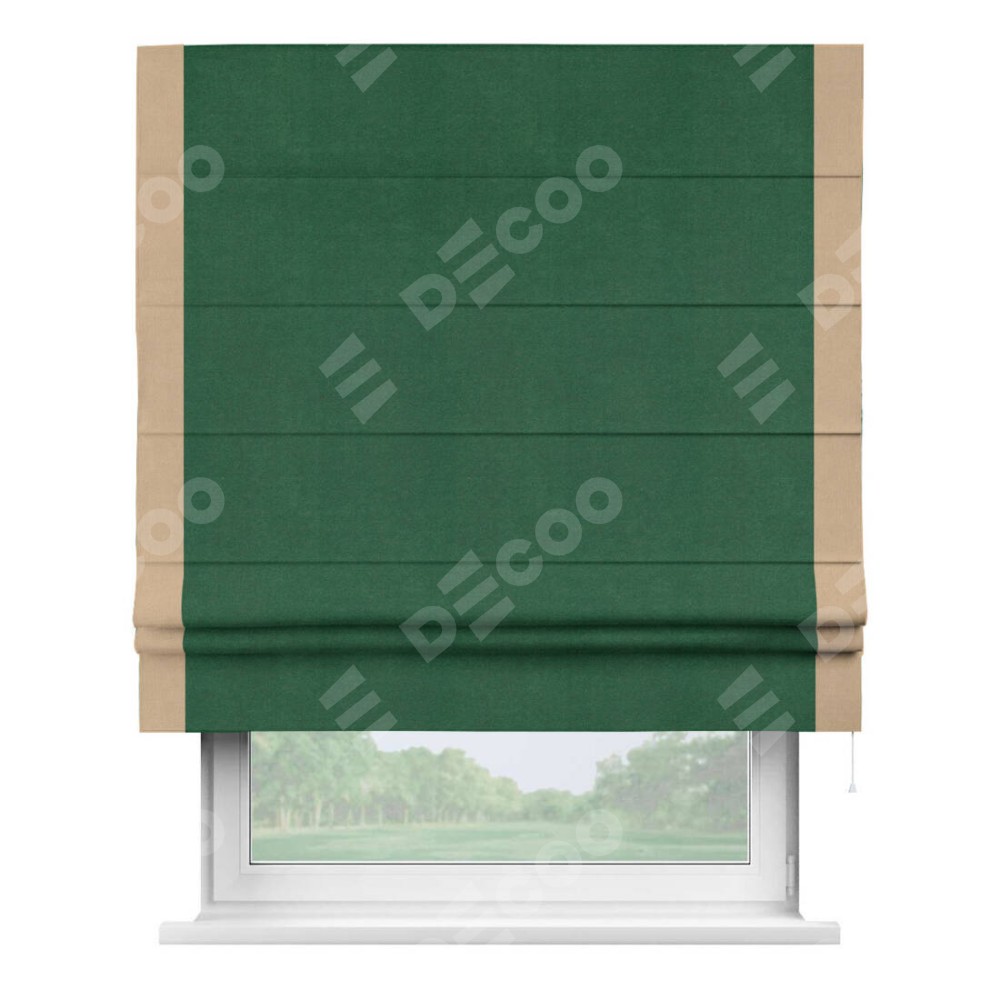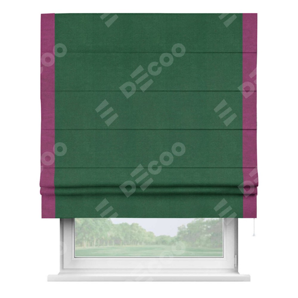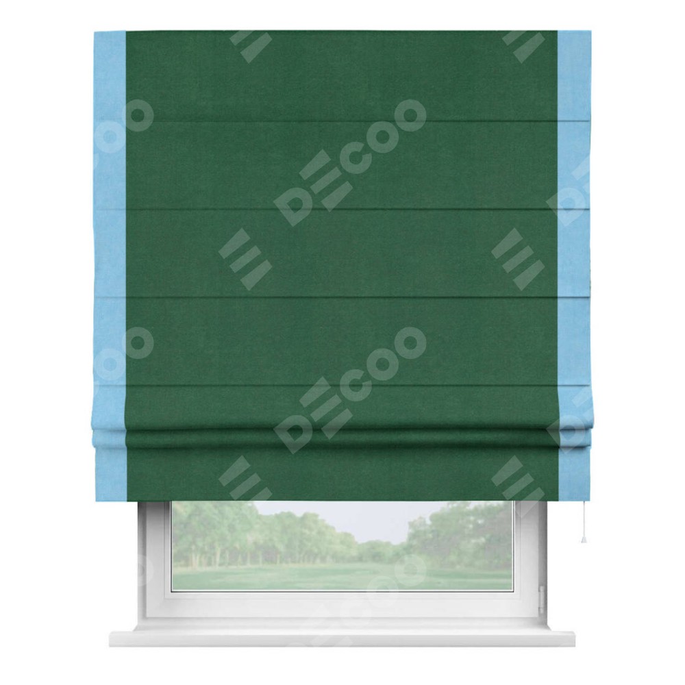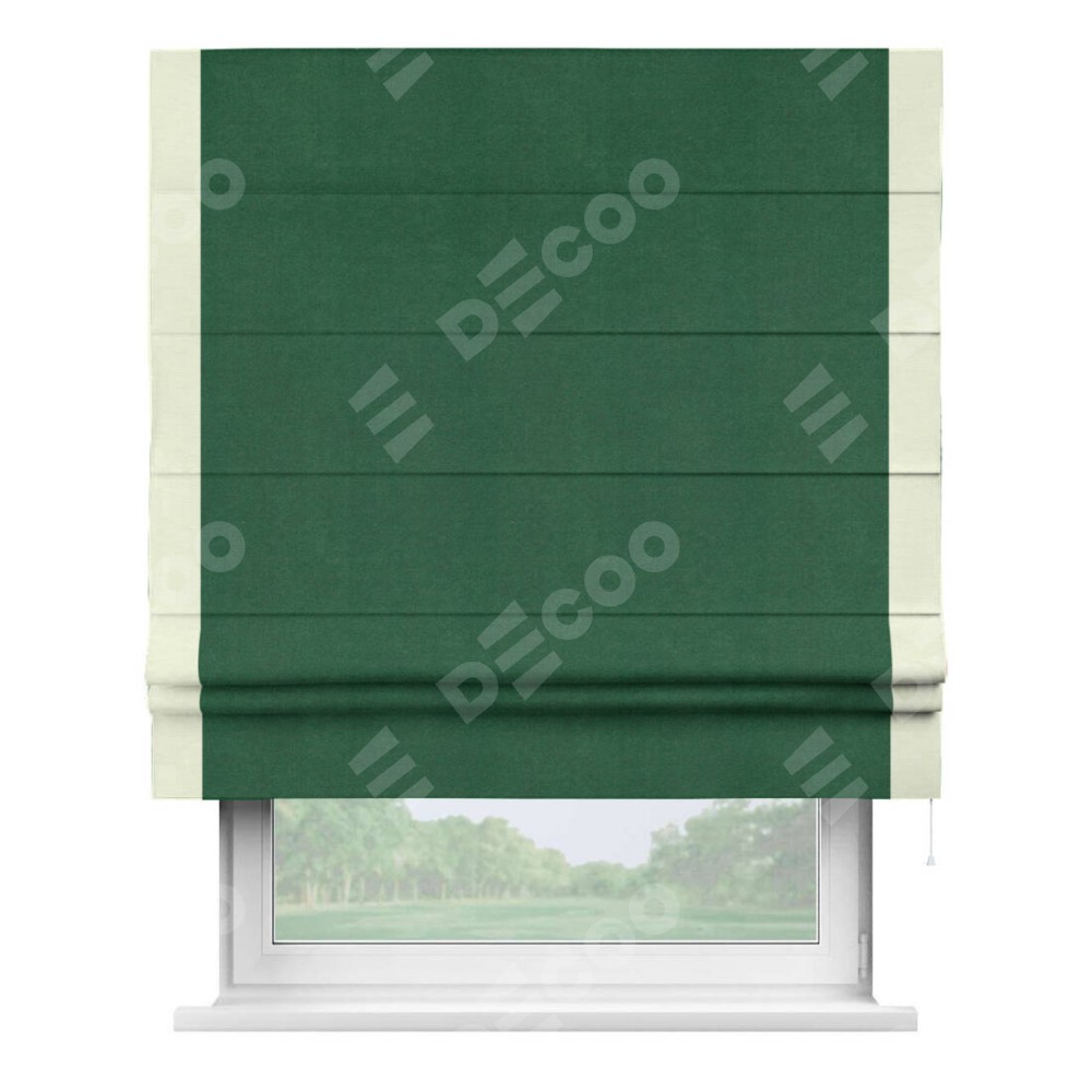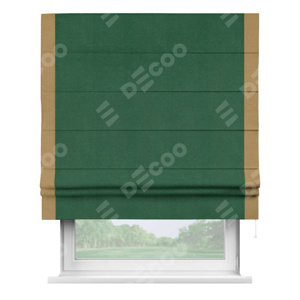 Римская штора «Кортин» с кантом Стрим Дуо, для проема, ткань вельвет зеленый