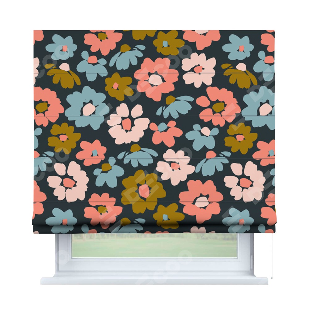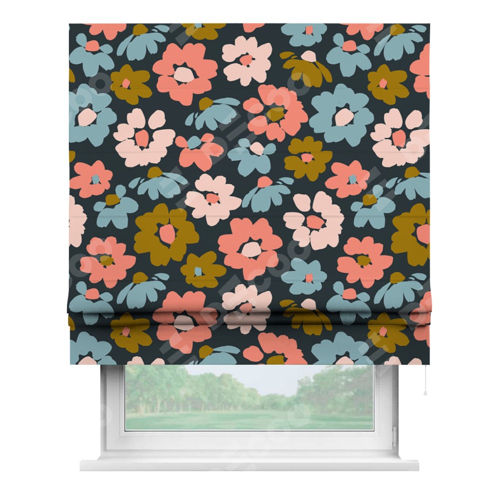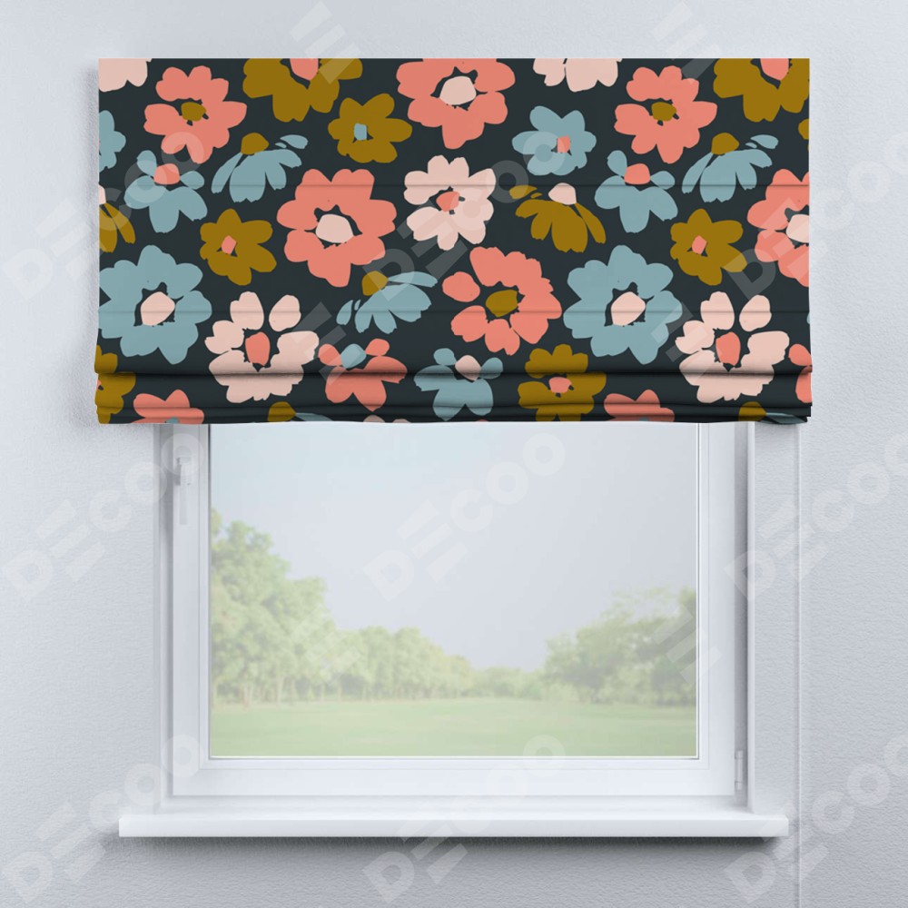Римская штора производителя «Cortin», используется для проёма, пошита из ткани блэкаут с нанесением сублимационной печати «Яркие цветы». Имеет универсальный механизм и подходит для монтажа: на потолок, на стену и в нишу.