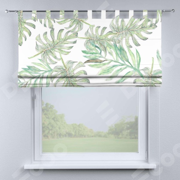 Римская штора производителя «Cortin», используется для проёма, пошита из ткани блэкаут с нанесением сублимационной печати «Листья монстеры». Данная модель пошита на петлях, комплектуется на выбор круглым карнизом и подходит для монтажа на стену. Римская штора на петлях имеет простую систему регулировки высоты, отличительным преимуществом данной модели является простой способ монтажа. Достаточно повесить ее на трубу и штора готова!