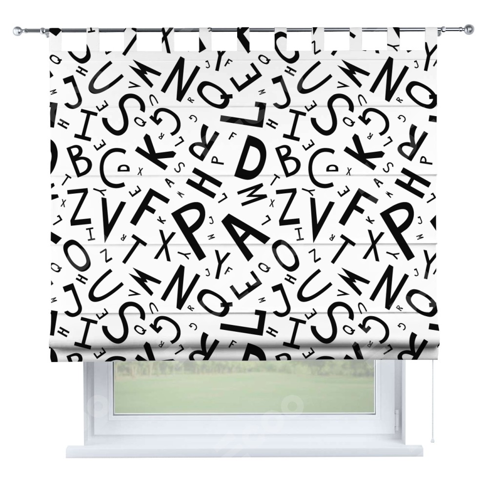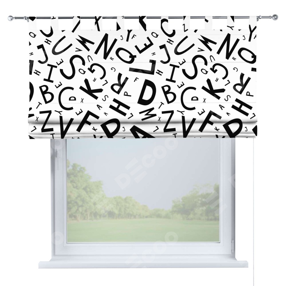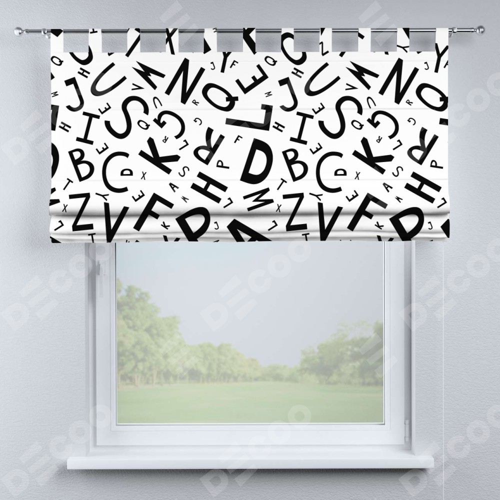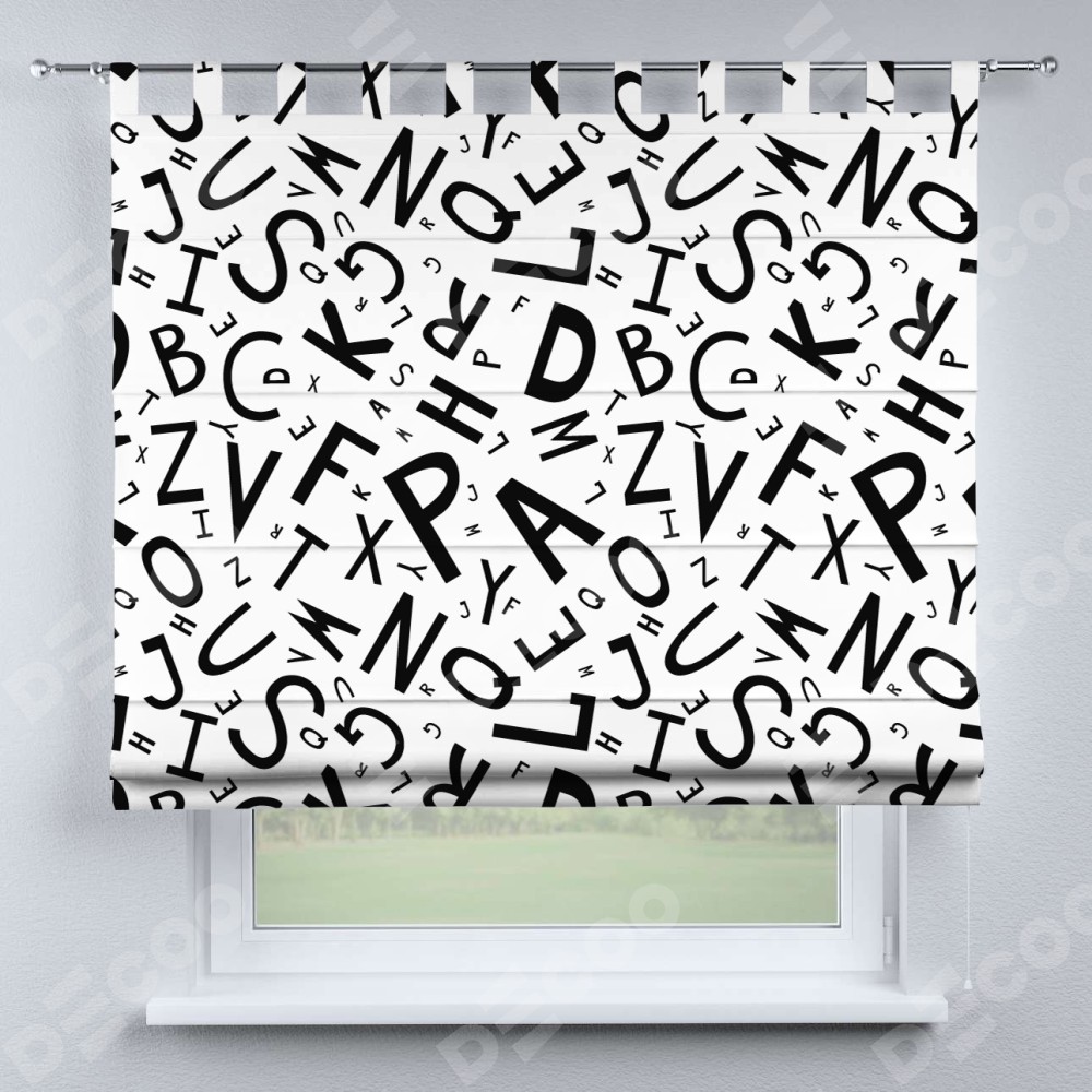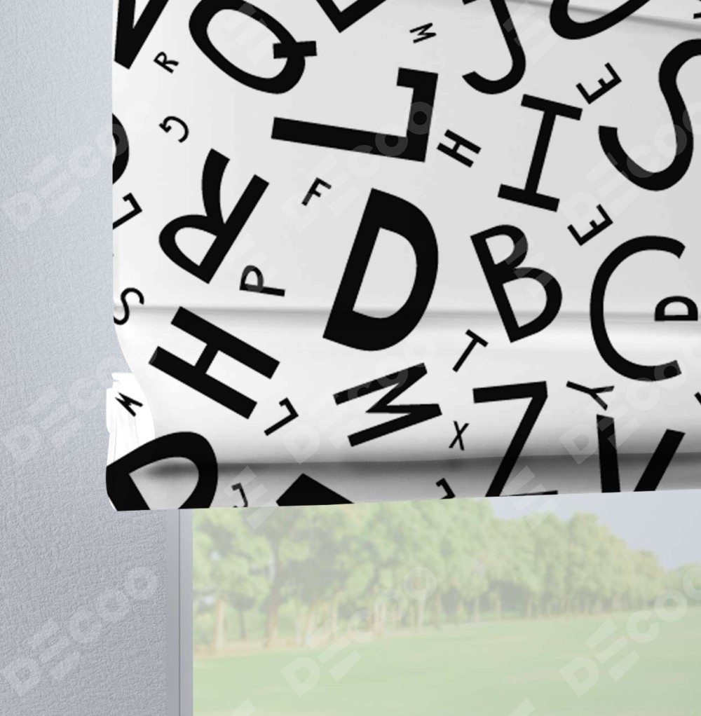 Римская штора производителя «Cortin», используется для проёма, пошита из ткани блэкаут с нанесением сублимационной печати «Литеры на белом». Данная модель пошита на петлях, комплектуется на выбор круглым карнизом и подходит для монтажа на стену. Римская штора на петлях имеет простую систему регулировки высоты, отличительным преимуществом данной модели является простой способ монтажа. Достаточно повесить ее на трубу и штора готова!