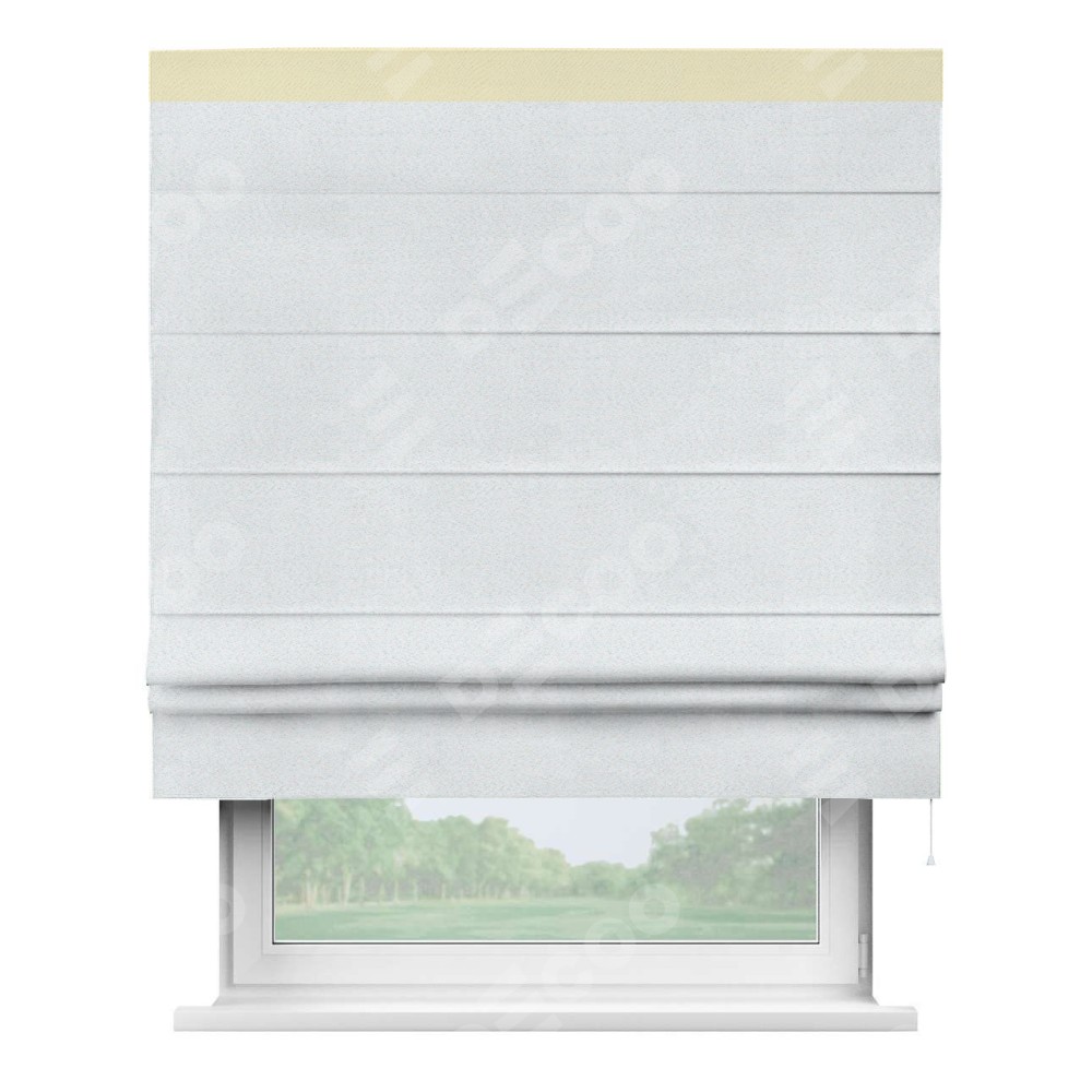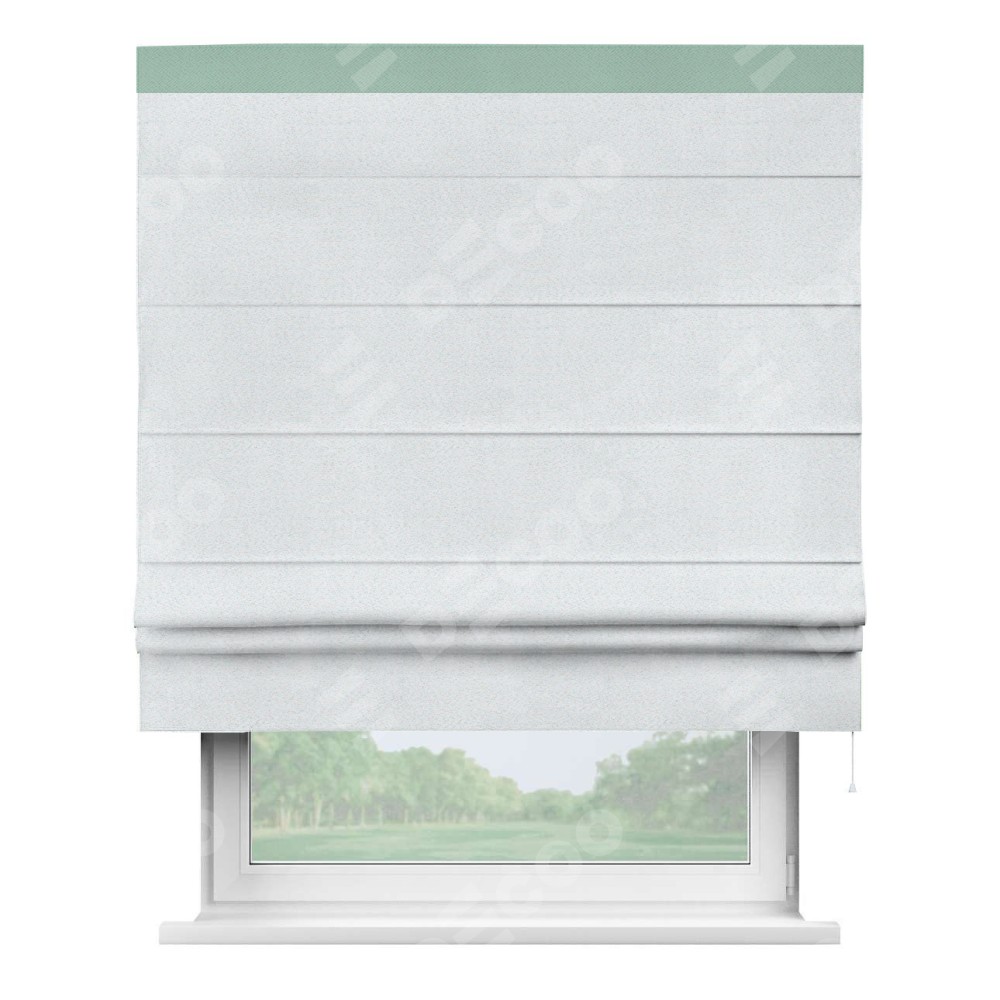 Римская штора производителя «Cortin», используется для проёма, пошита из ткани блэкаут однотонный дымчато-белый, артикул ткани 101. Отделка шторы кантом «Кинг», ткань для канта используется из блэкаута однотонного разной расцветки на выбор. Имеет универсальный механизм и подходит для монтажа: на потолок, на стену и в нишу.