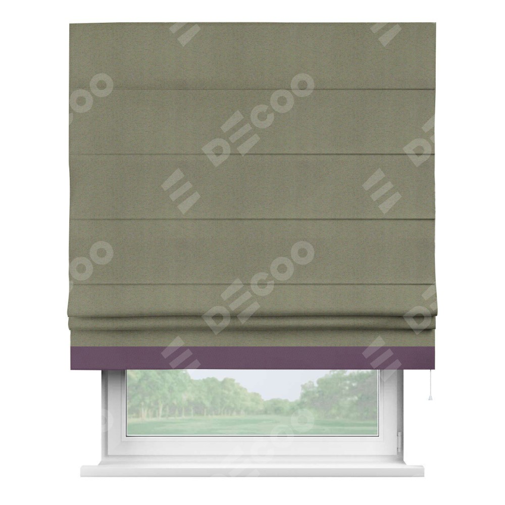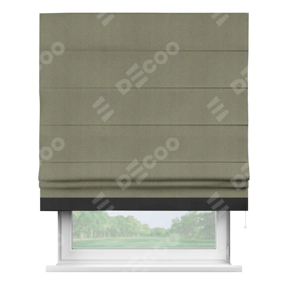 Римская штора производителя «Cortin», используется для проёма, пошита из ткани блэкаут однотонный серо-коричневый, артикул ткани 29568. Отделка шторы кантом «Джестер», ткань для канта используется из блэкаута однотонного разной расцветки на выбор. Имеет универсальный механизм и подходит для монтажа: на потолок, на стену и в нишу.