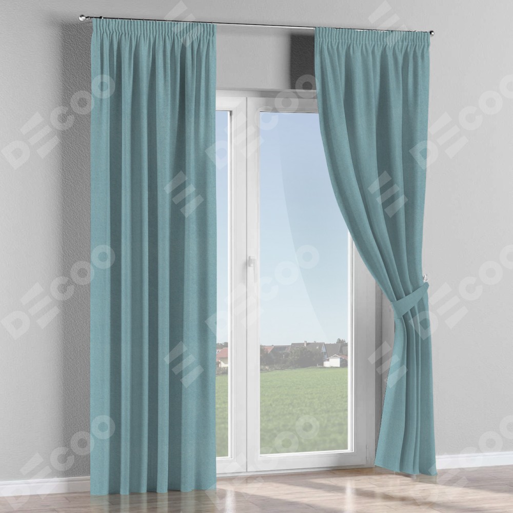 Комплект прямых штор, от производителя «Cortin», пошиты из ткани блэкаут с блеском синий, артикул ткани 34625. С изнаночной стороны в верхней части штор пристрачивается шторная лента с декоративными складками «Карандаш». Обратная сторона основного материала черного цвета, что обеспечивает необходимую светонепроницаемость. Для создания элегантных складок прямые шторы шьются по стандарту с коэффициентом 1:2 (на 100 см. ширины проёма 200 см. ширины ткани).