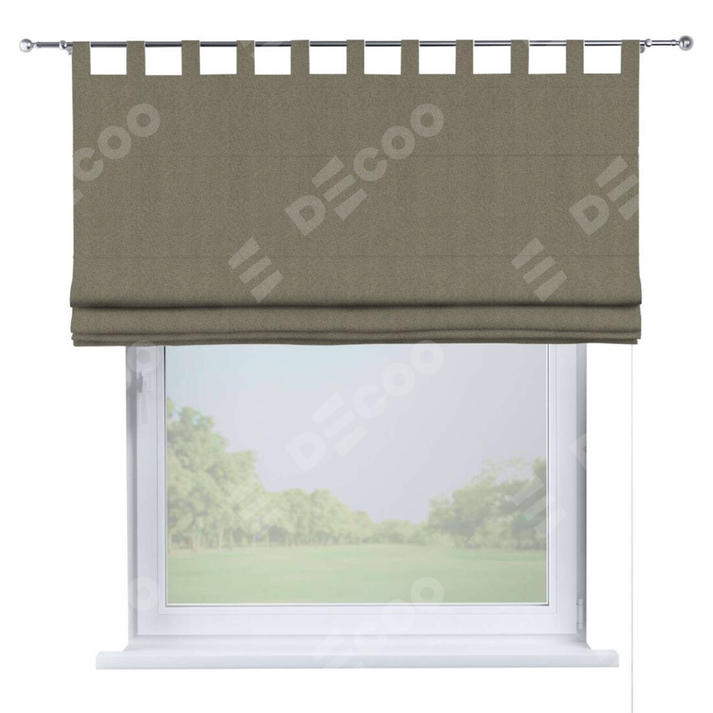 Римская штора производителя «Cortin», используется для проёма, пошита из ткани блэкаут тиснение с блеском графитовый, артикул ткани 34648. Изнаночная сторона материала черного цвета, что обеспечивает необходимую светонепроницаемость. Данная модель пошита на петлях, комплектуется на выбор круглым карнизом и подходит для монтажа на стену. Римская штора на петлях имеет простую систему регулировки высоты, отличительным преимуществом данной модели является простой способ монтажа. Достаточно повесить ее на трубу и штора готова!