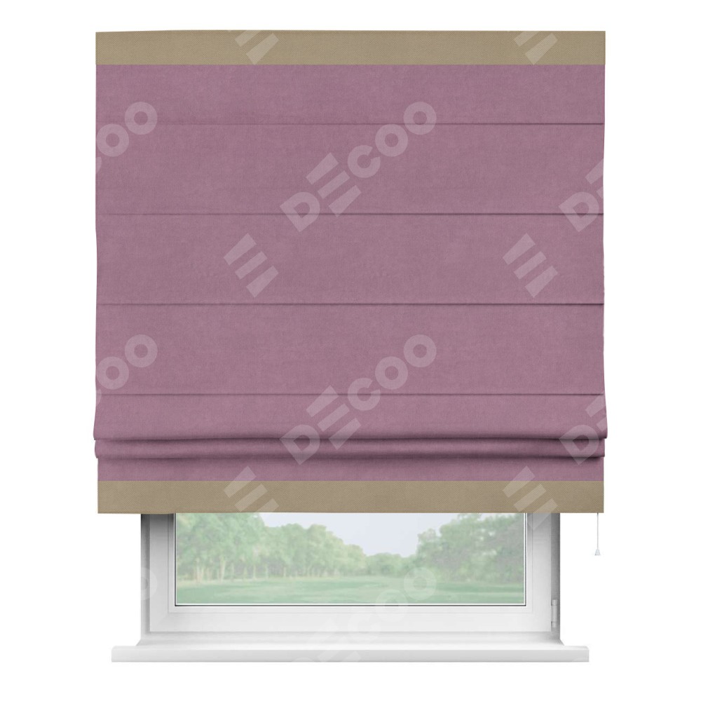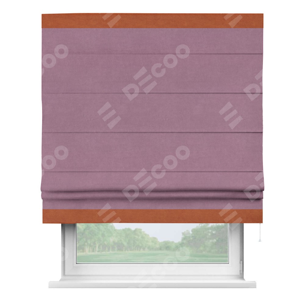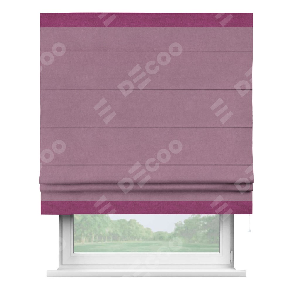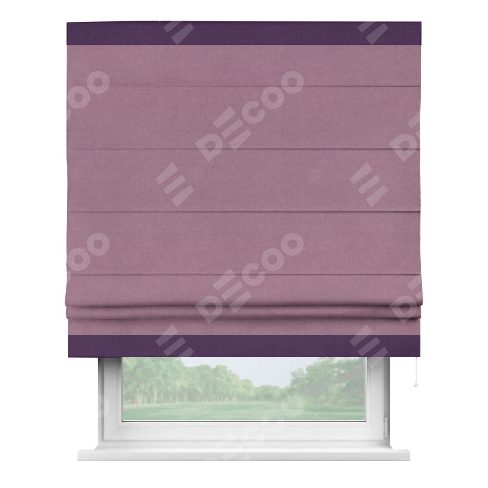 Римская штора «Кортин» с кантом Горизонт, для проема, ткань вельвет лиловый
