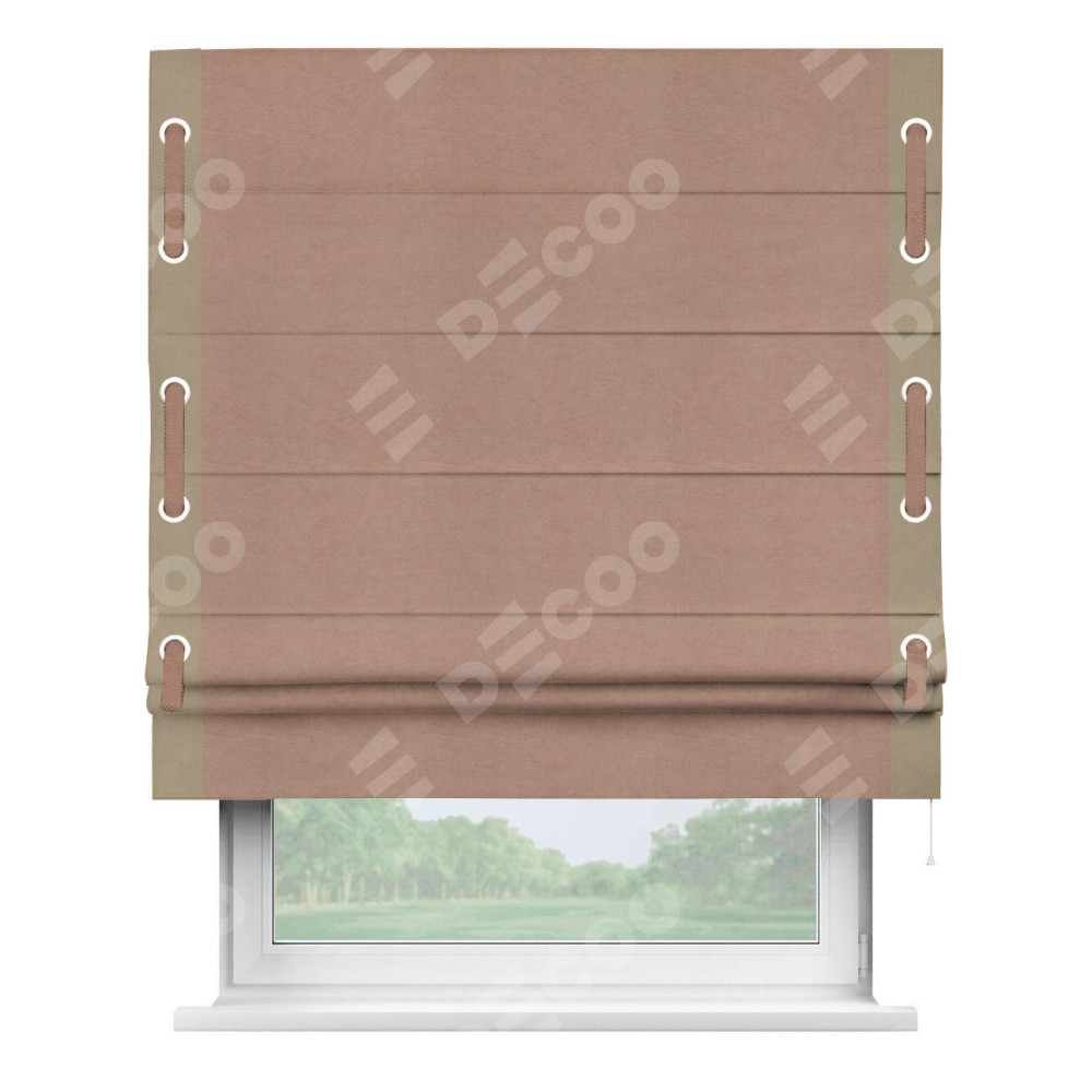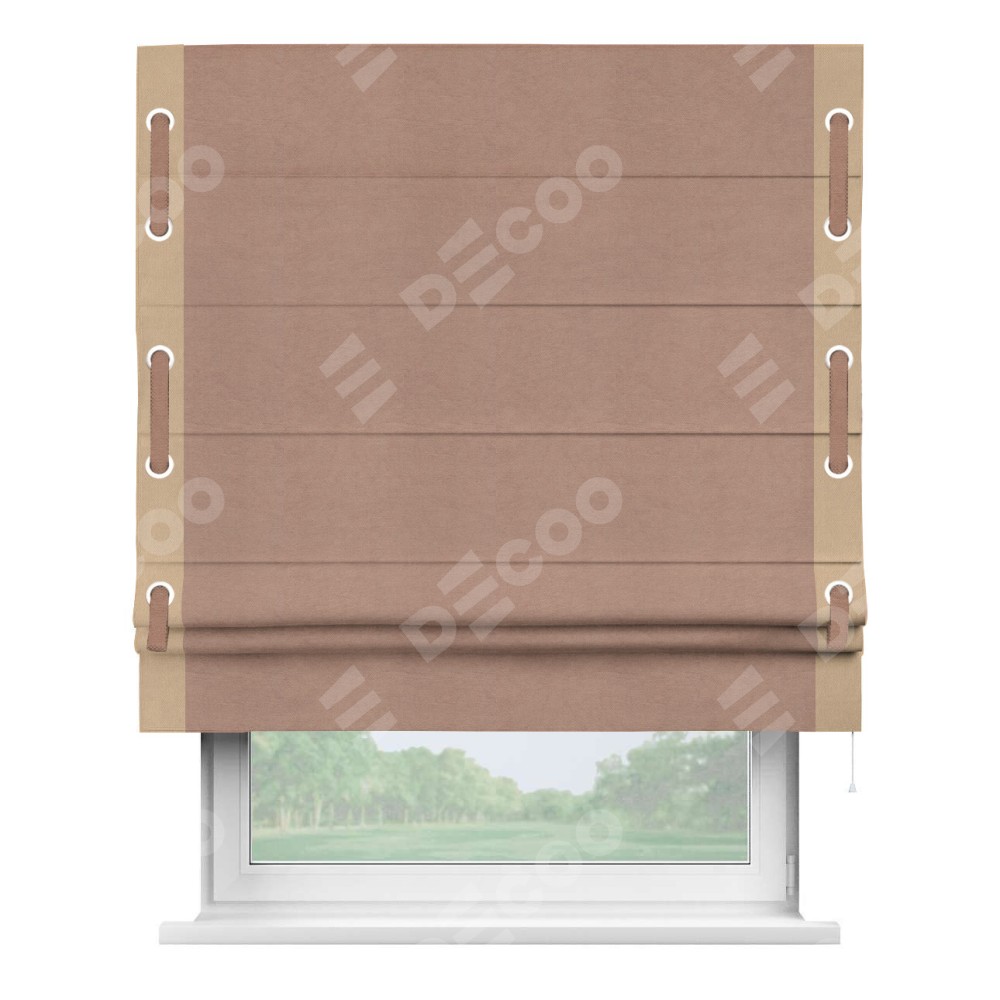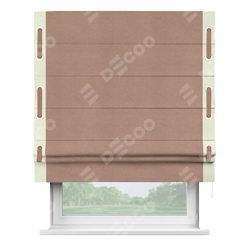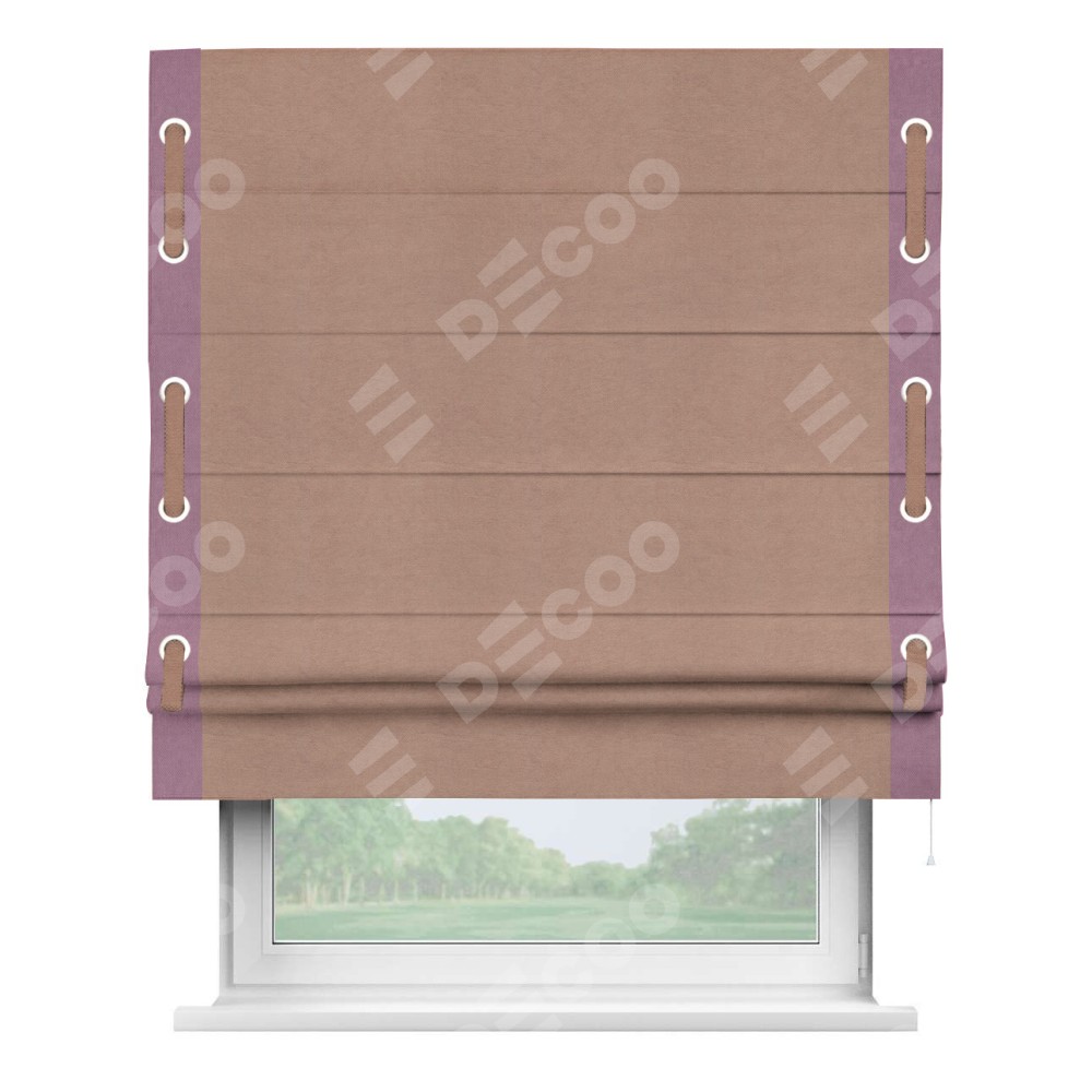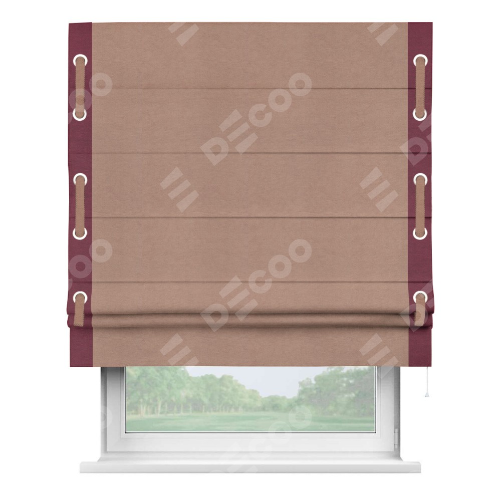 Римская штора «Кортин» с кантом Стрим Дуо (люверсы с пояском), для проема, ткань вельвет брусничный джем