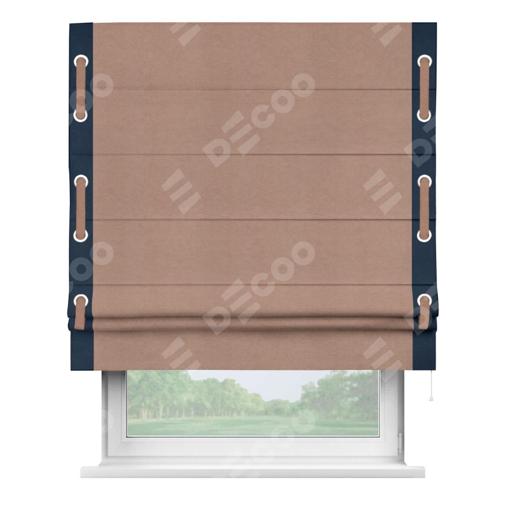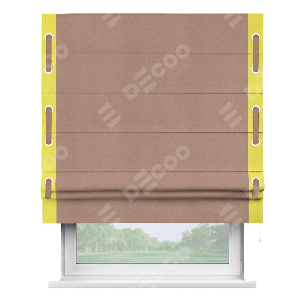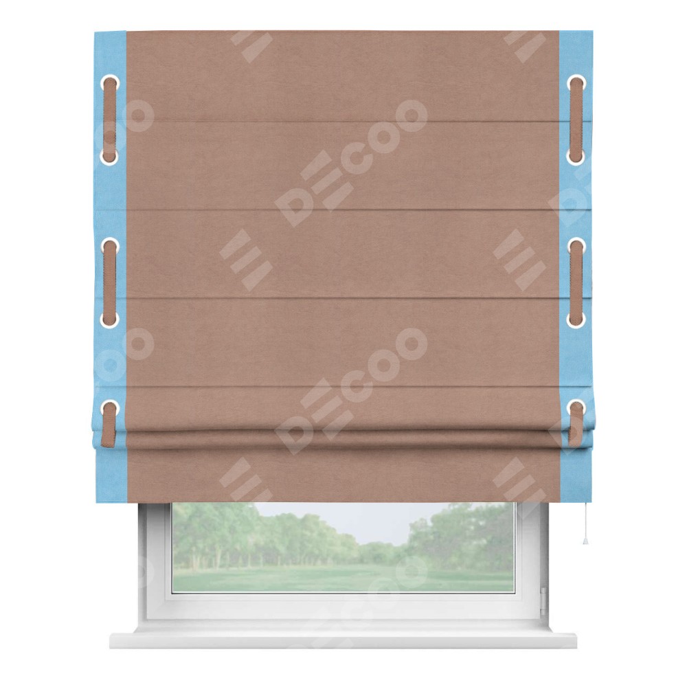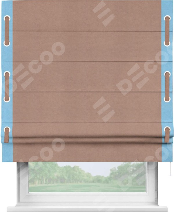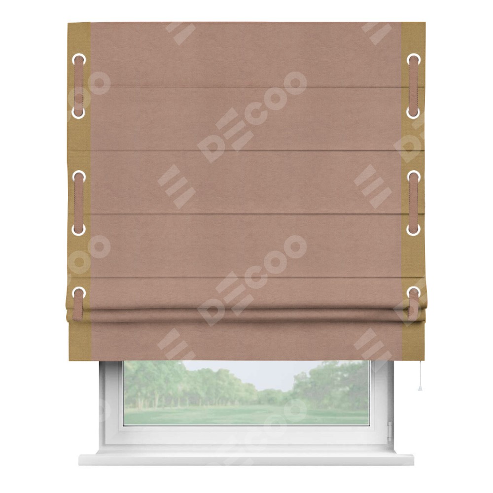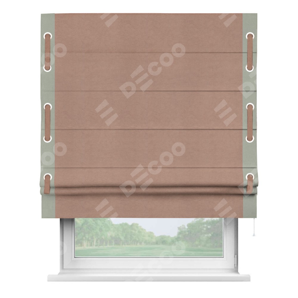 Римская штора «Кортин» с кантом Стрим Дуо (люверсы с пояском), для проема, ткань вельвет брусничный джем
