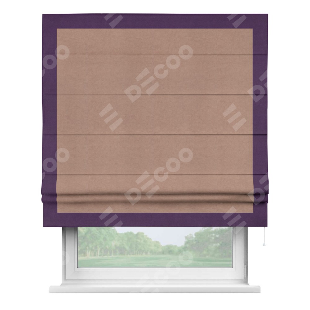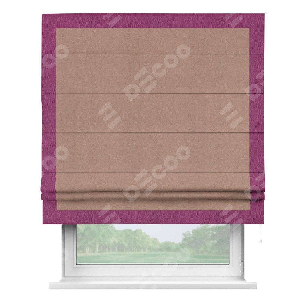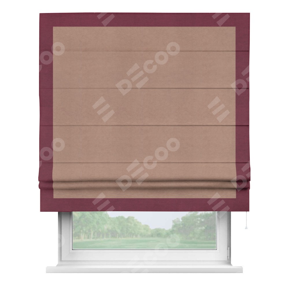 Римская штора «Кортин» с кантом Чесс, для проема, ткань вельвет брусничный джем