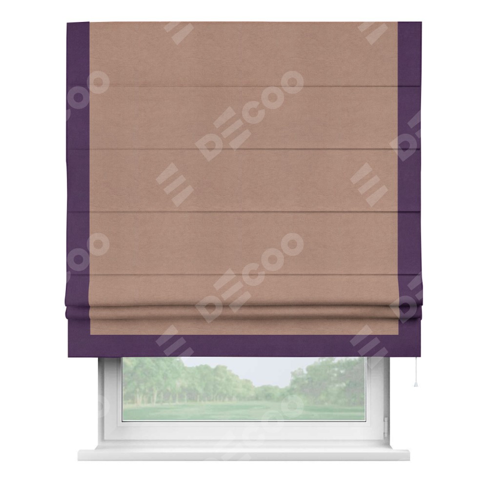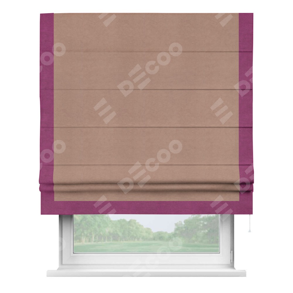 Римская штора «Кортин» с кантом Виктория, для проема, ткань вельвет брусничный джем