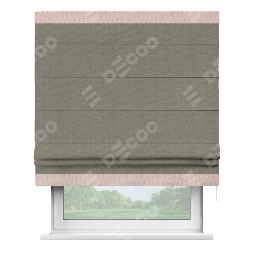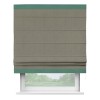 Римская штора производителя «Cortin», используется для проёма, пошита из ткани блэкаут с блеском графитовый, артикул 34648. Отделка шторы кантом «Горизонт», ткань для канта используется из блэкаута с блеском разной расцветки на выбор. Изнаночная сторона материала черного цвета, что обеспечивает необходимую светонепроницаемость. Имеет универсальный механизм и подходит для монтажа: на потолок, на стену и в нишу.