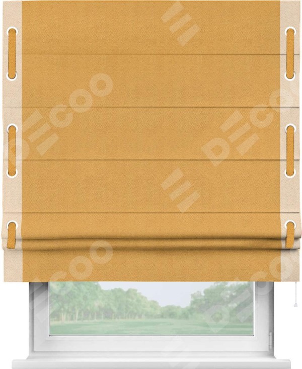 Римская штора «Кортин» с кантом Стрим Дуо (люверсы с пояском), для проема, ткань блэкаут с блеском золотой