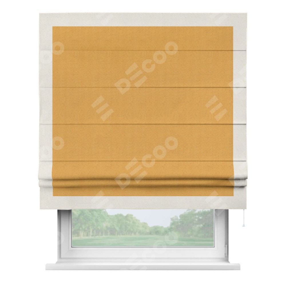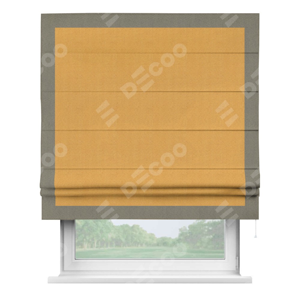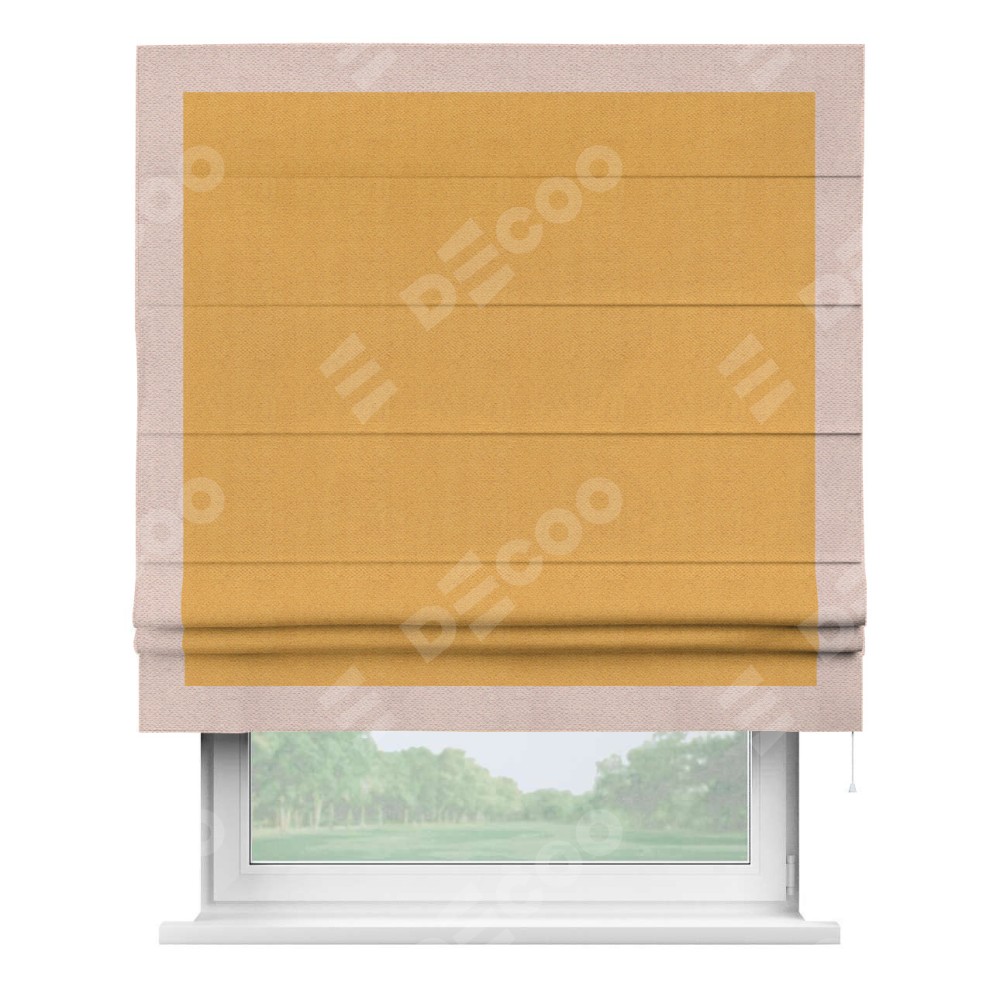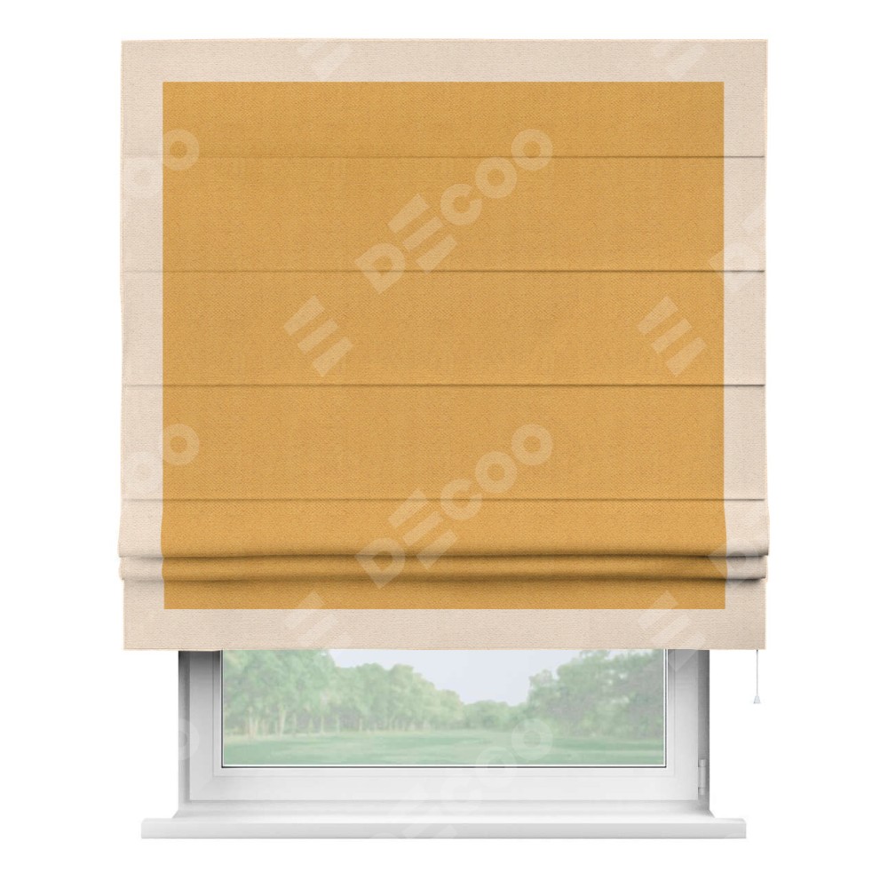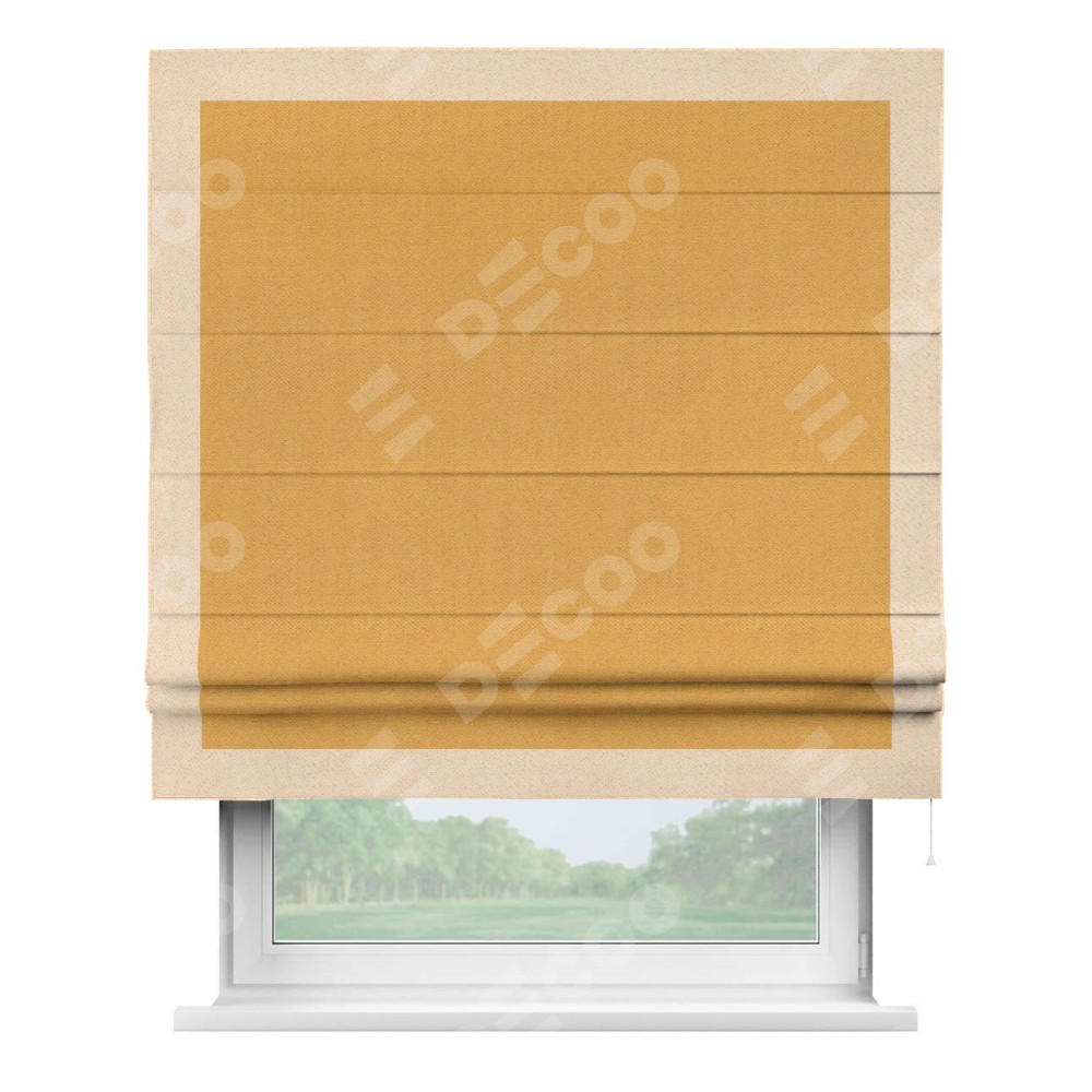 Римская штора «Кортин» с кантом Чесс, для проема, ткань блэкаут с блеском золотой