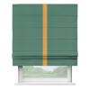 Римская штора производителя «Cortin», используется для проёма, пошита из ткани блэкаут с блеском изумрудный, артикул 34628. Отделка шторы кантом «Хайвэй», ткань для канта используется из блэкаута с блеском разной расцветки на выбор. Изнаночная сторона материала черного цвета, что обеспечивает необходимую светонепроницаемость. Имеет универсальный механизм и подходит для монтажа: на потолок, на стену и в нишу.