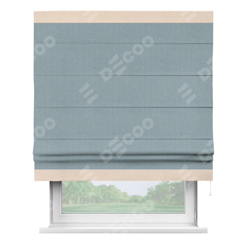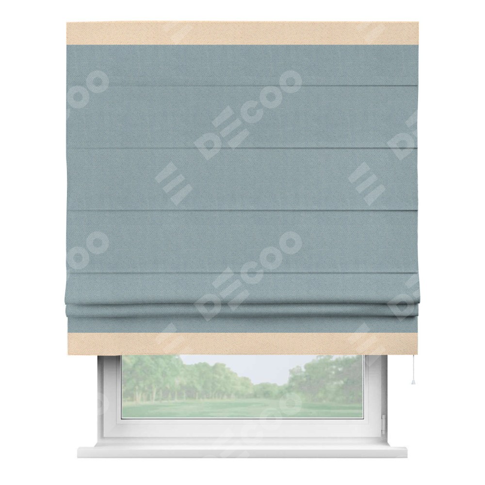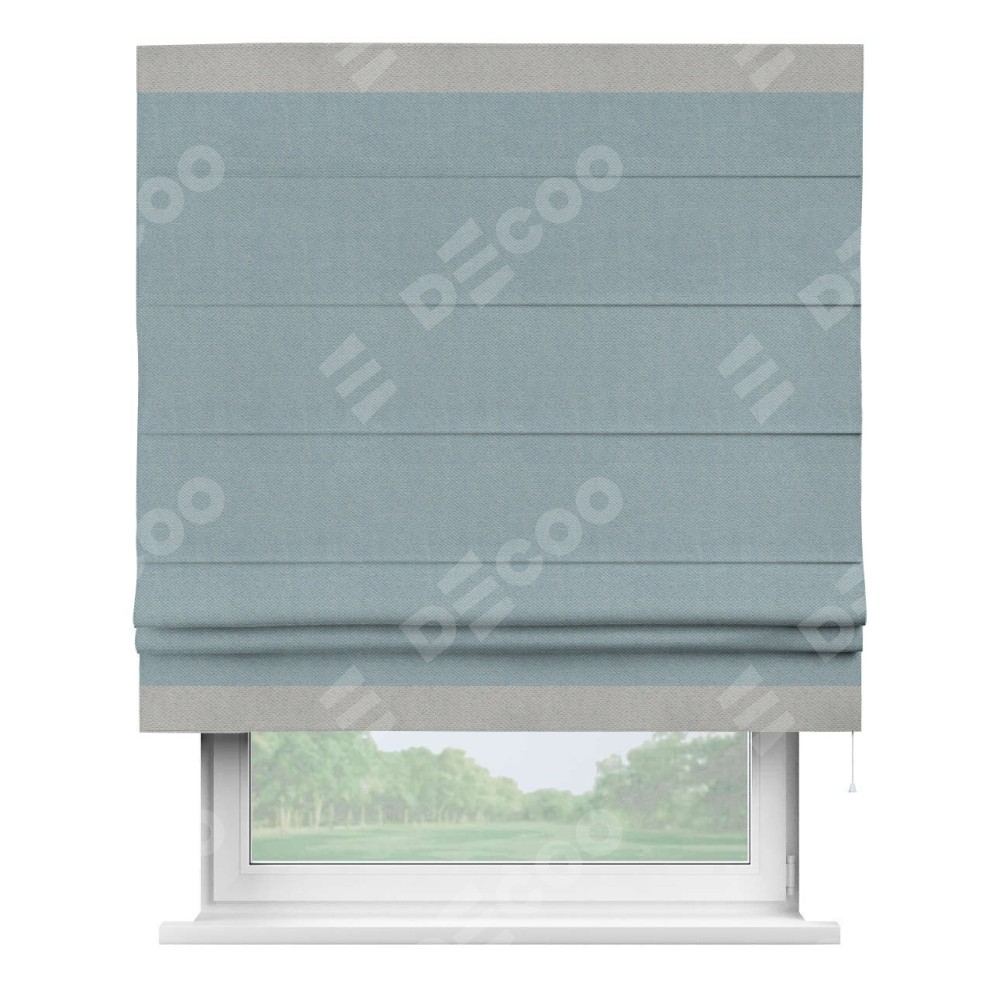 Римская штора «Кортин» с кантом Горизонт, для проема, ткань блэкаут с блеском синий
