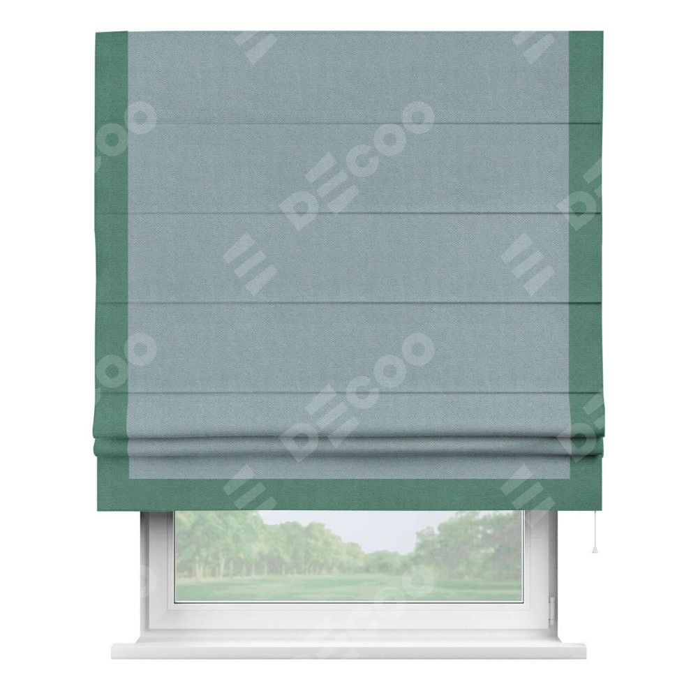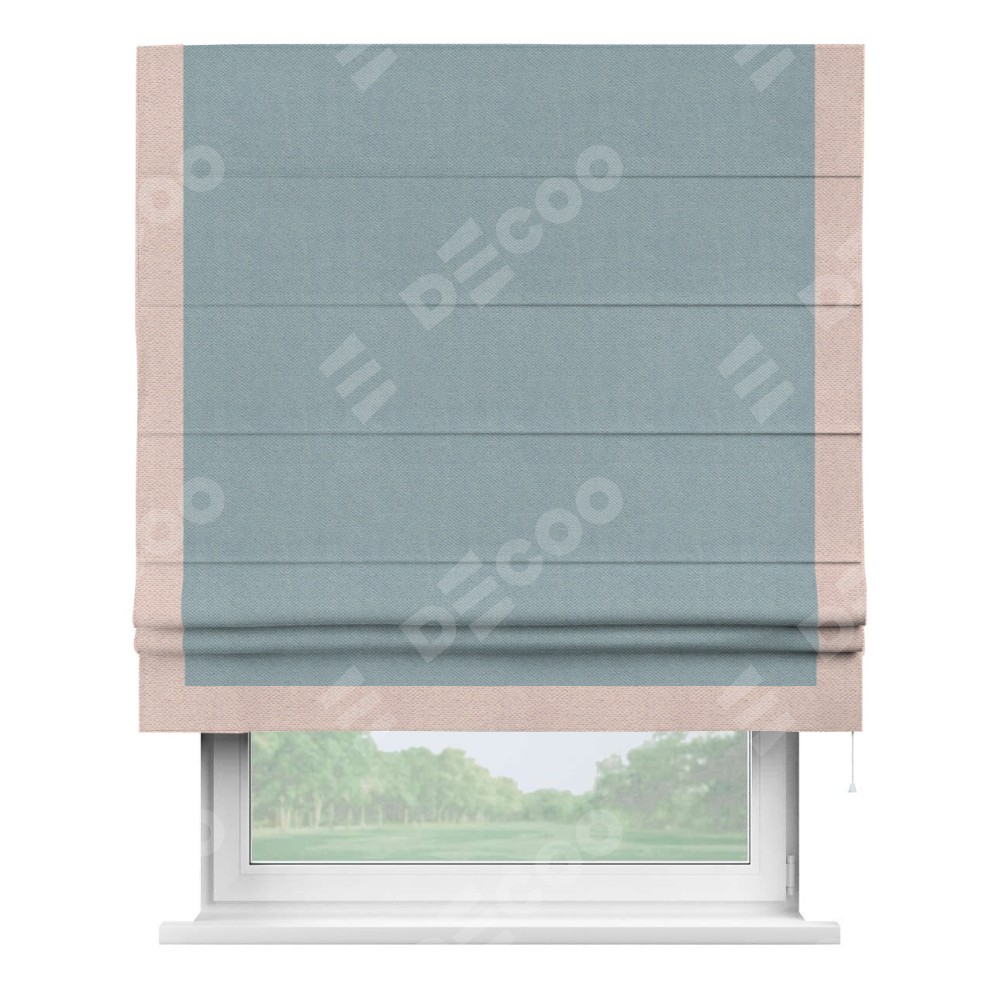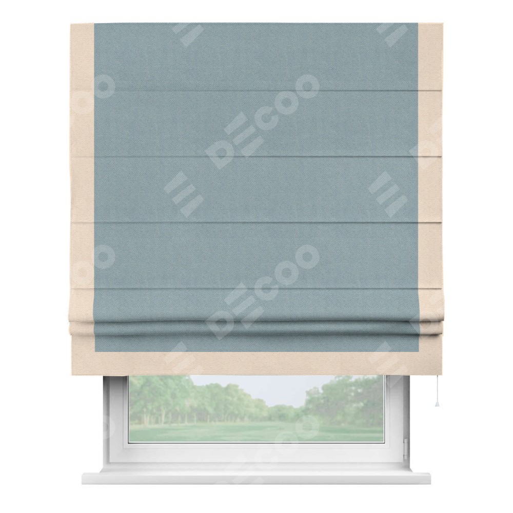 Римская штора «Кортин» с кантом Виктория, для проема, ткань блэкаут с блеском синий