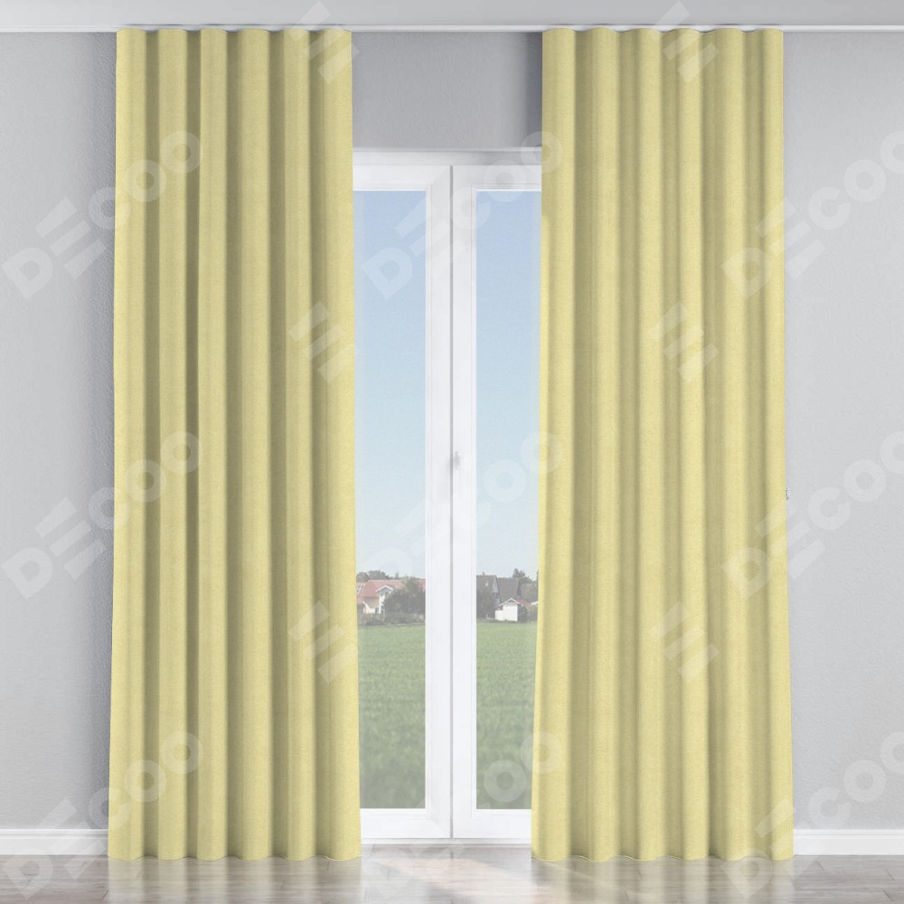 Комплект прямых штор, от производителя «Cortin», пошиты из ткани софт однотонный молочный, артикул ткани 11938. С изнаночной стороны в верхней части штор пристрачивается шторная лента с декоративными складками «Волна». Для создания элегантных складок прямые шторы шьются по стандарту с коэффициентом 1:2 (на 100 см. ширины проёма 200 см. ширины ткани).