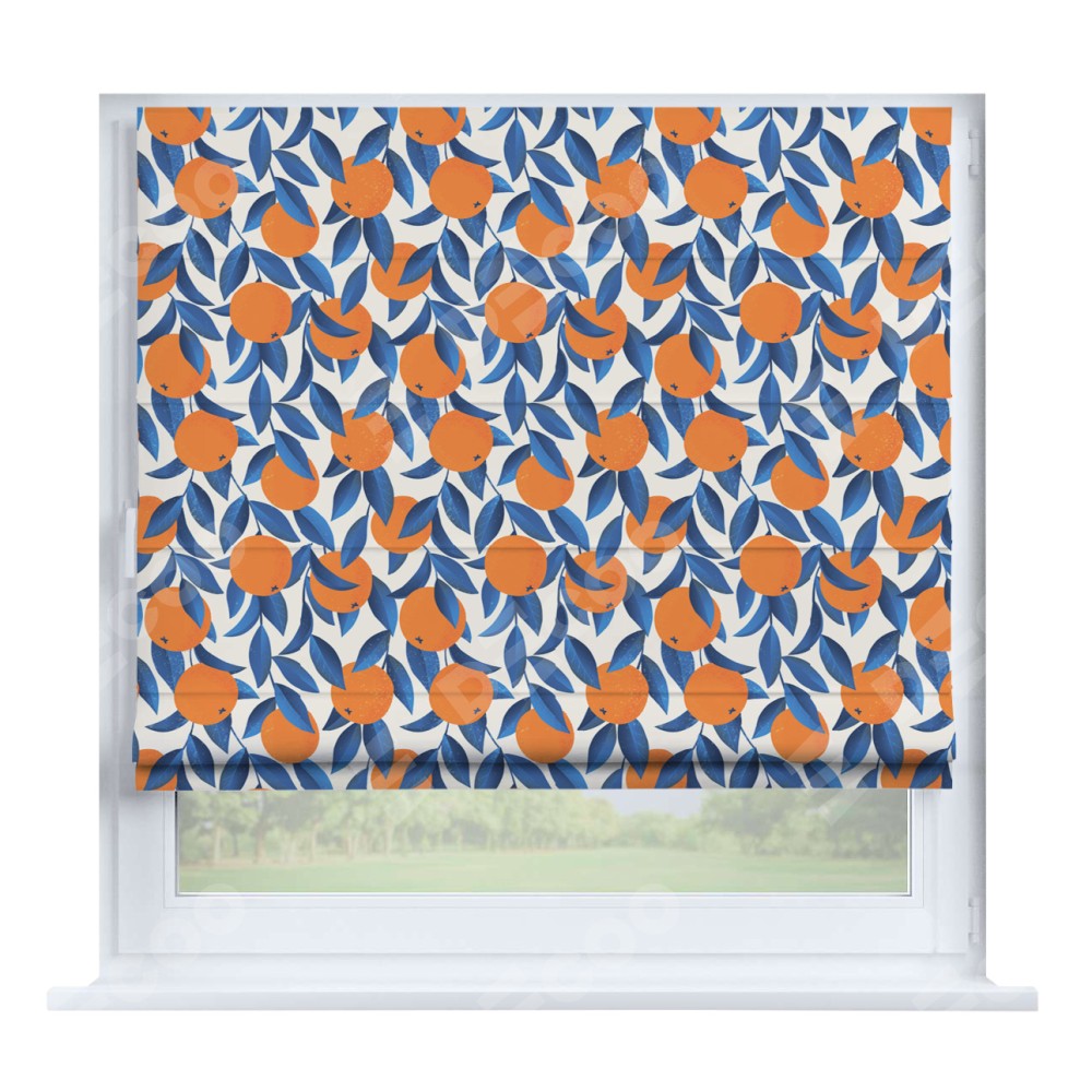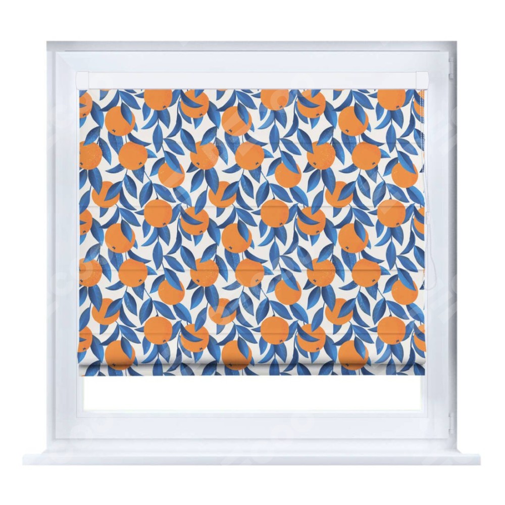 Римская штора производителя «Cortin», устанавливается на створку окна, пошита из ткани блэкаут с нанесением сублимационной печати «Апельсиновое настроение». Штора шьётся по индивидуальным размерам, для данного типа римской шторы возможная ширина от 35 до 150 см., высота до 250 см.