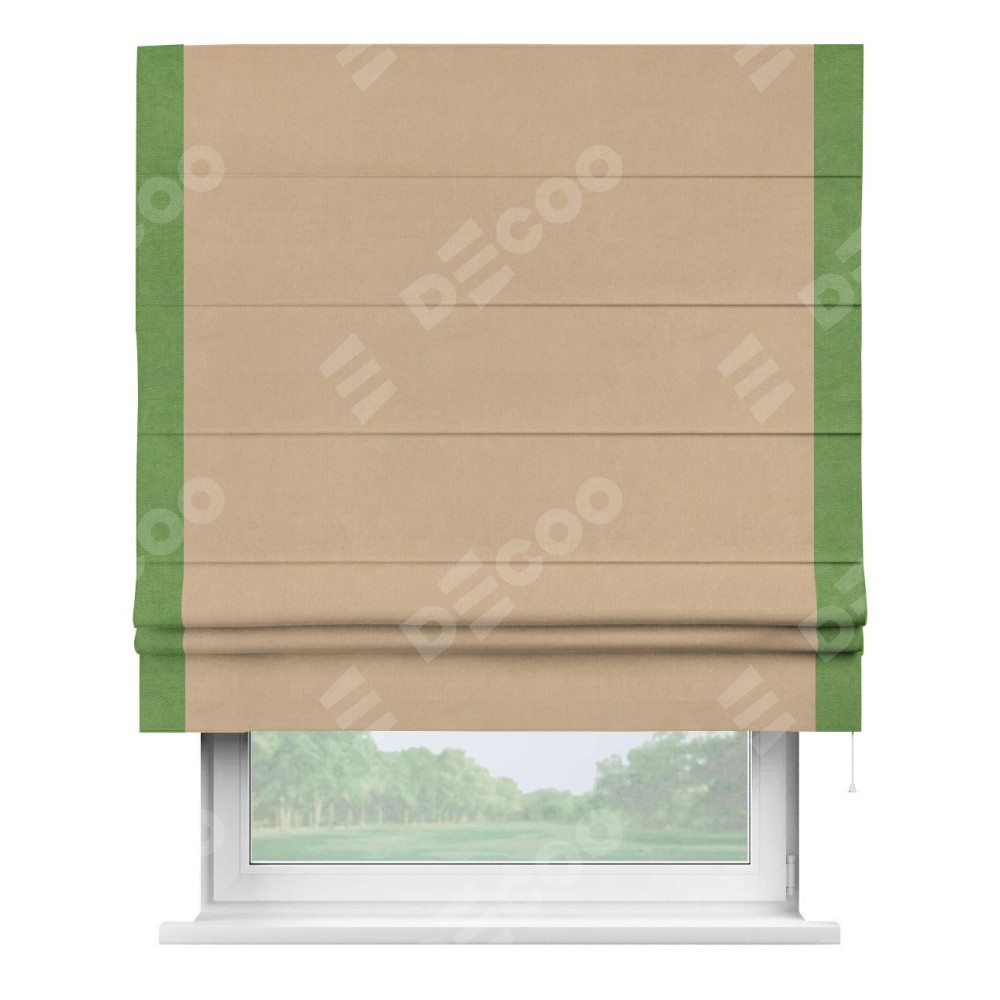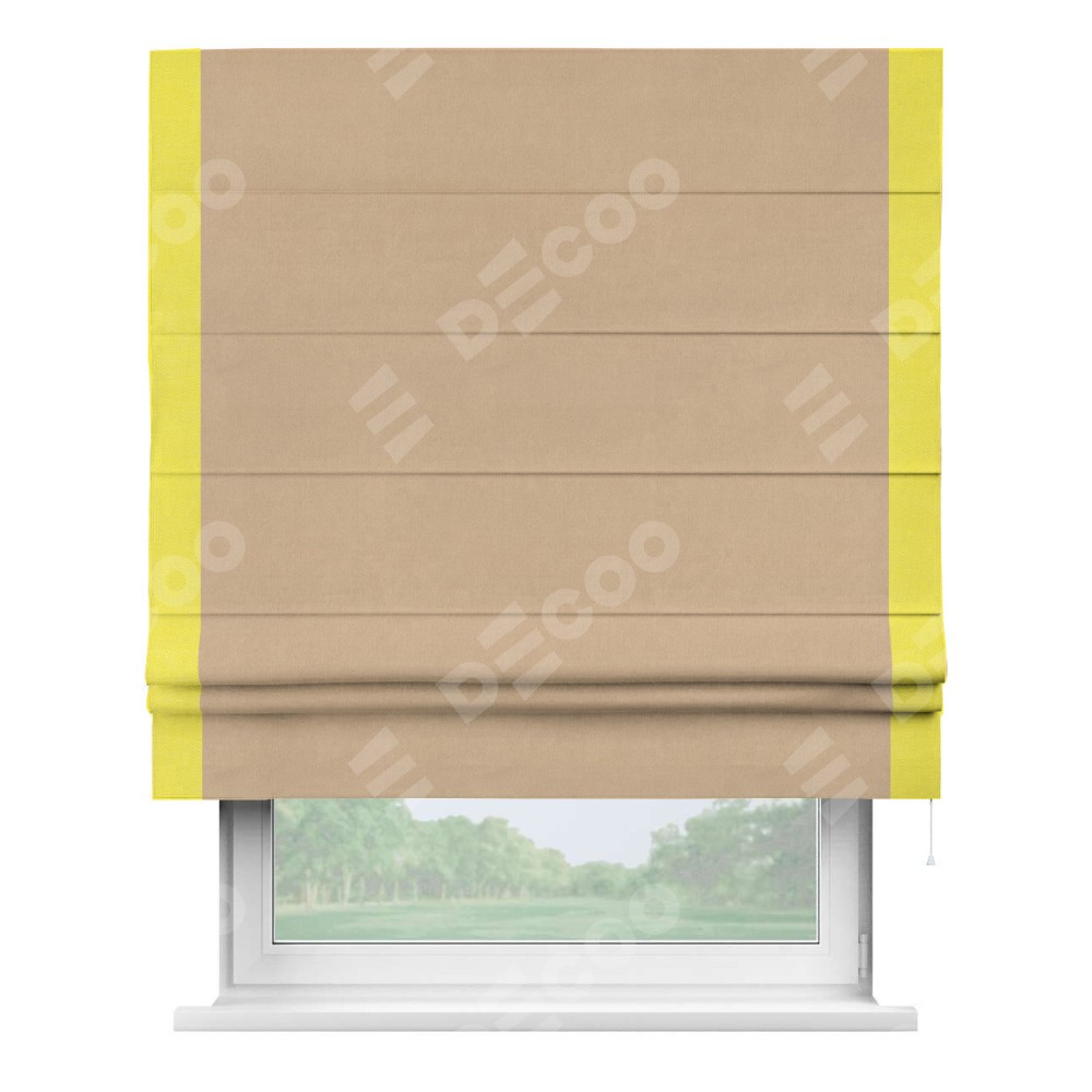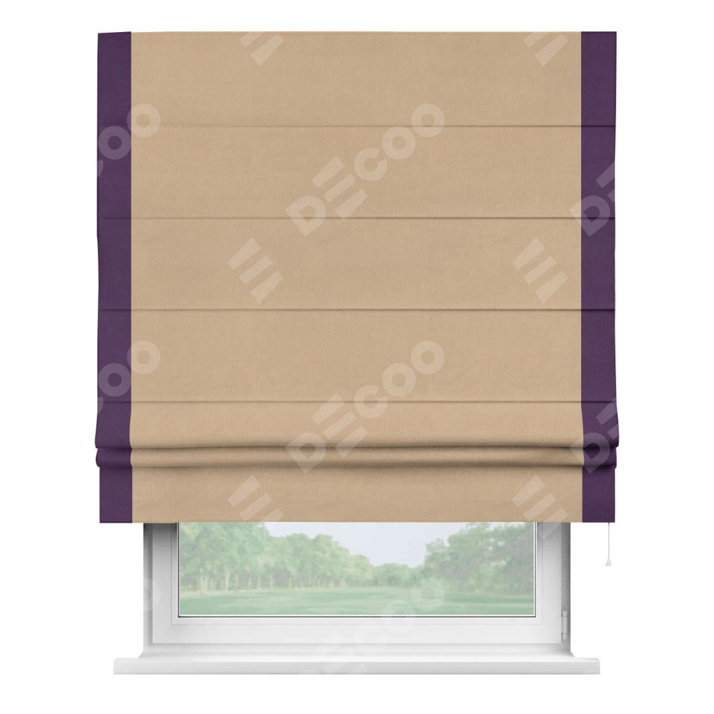 Римская штора «Кортин» с кантом Стрим Дуо, для проема, ткань вельвет песочный