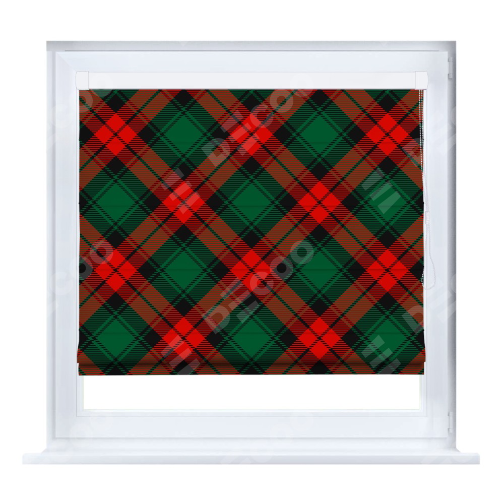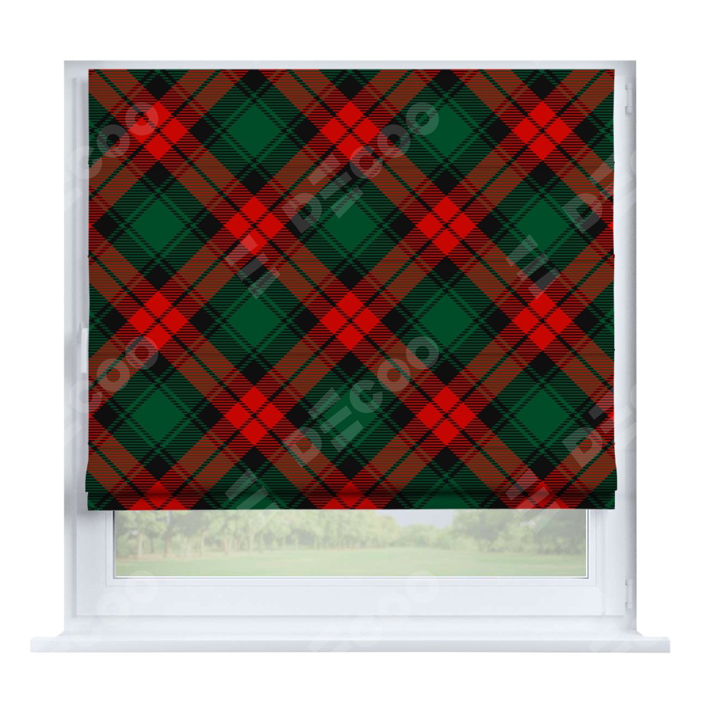 Римская штора производителя «Cortin», устанавливается на створку окна, пошита из ткани блэкаут с нанесением сублимационной печати «Красно-зелёная клетка». Штора шьётся по индивидуальным размерам, для данного типа римской шторы возможная ширина от 35 до 150 см., высота до 250 см.